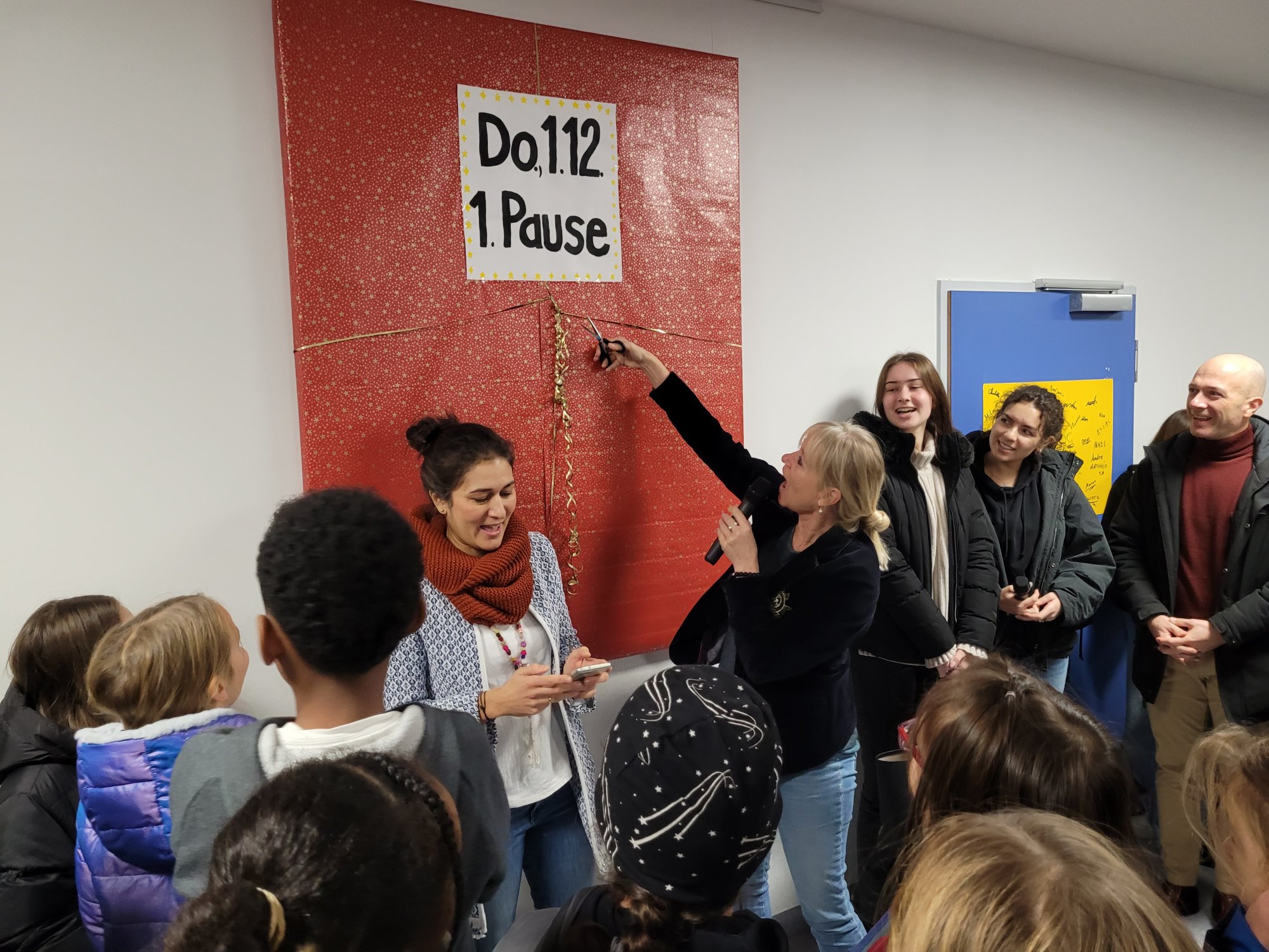 Der Kunst-LK der Q1 enthüllt in 3 Pausen 3 Leinwände und beschert der Schulgemeinschaft damit einen kleinen Adventskalender