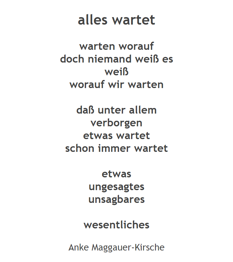 Wir alle warten und freuen uns auf das Ungesagte, das Unsagbare und das Wesentliche, was im kommenden Jahr 2020 vor uns liegt. Wir freuen uns auf die Begegnungen in der Schule, auf das Gemeinsame - gemeinsam können wir Zukunft in einer weltoffenen und toleranten Ziehenschule gestalten.