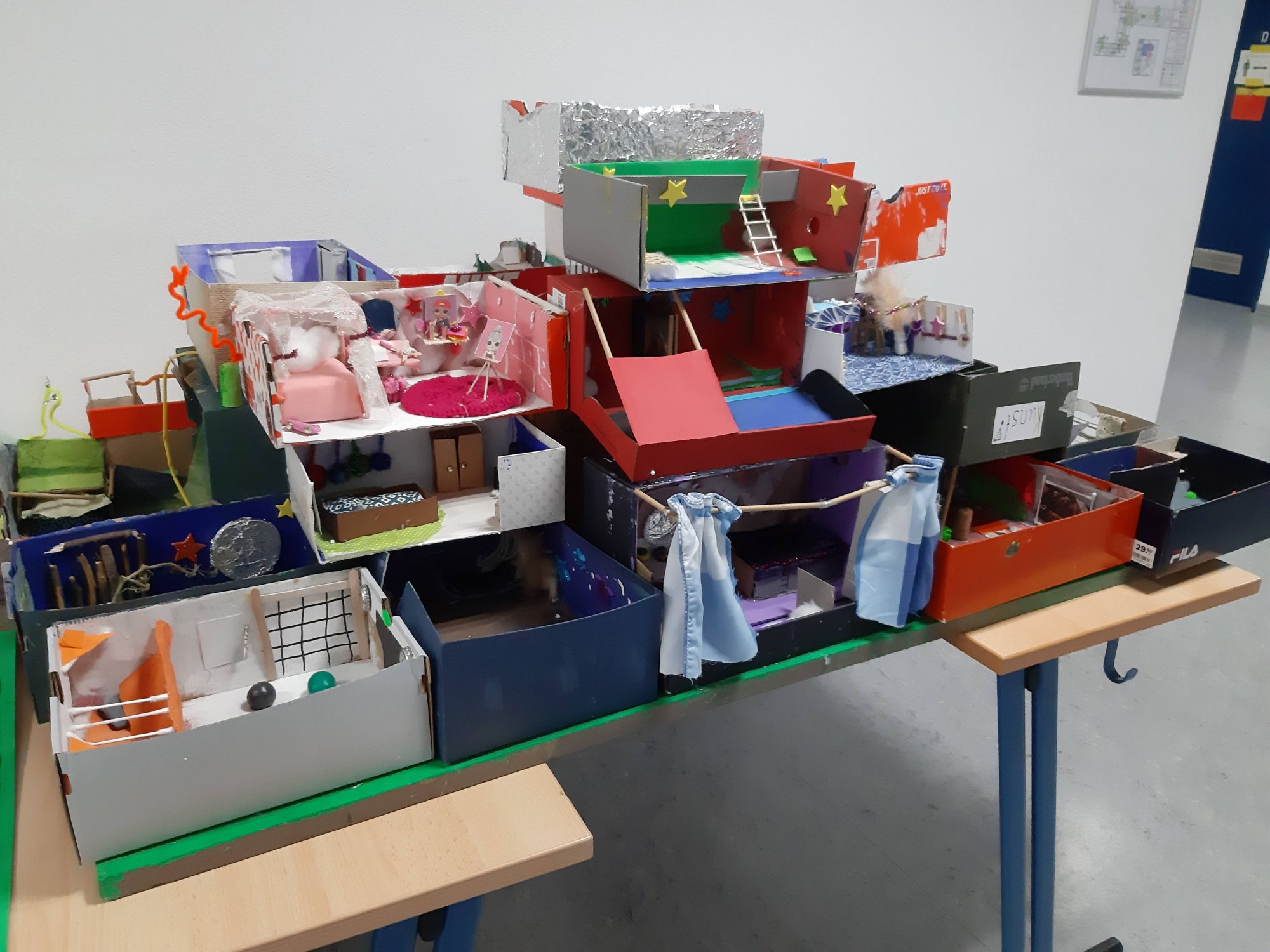 Was wäre, wenn es noch einmal zu einem Lockdown käme und die Ziehenschule jeder 5.Klasse ein Wunschschloss mit individuell gestalteten Zimmern und einem Klassengarten sponsern würde? Mit diesem Szenario haben sich die Klassen 5d und 5e im ersten Halbjahr künstlerisch auseinander gesetzt und zwei entzückende Modelle gebaut. Nun - nach überstandenem Lockdown - wollen wir die kleinen Utopien für eine Woche im Lehrergang ausstellen. Viel Spaß beim genauen Hinsehen und Entdecken liebevoller Details!