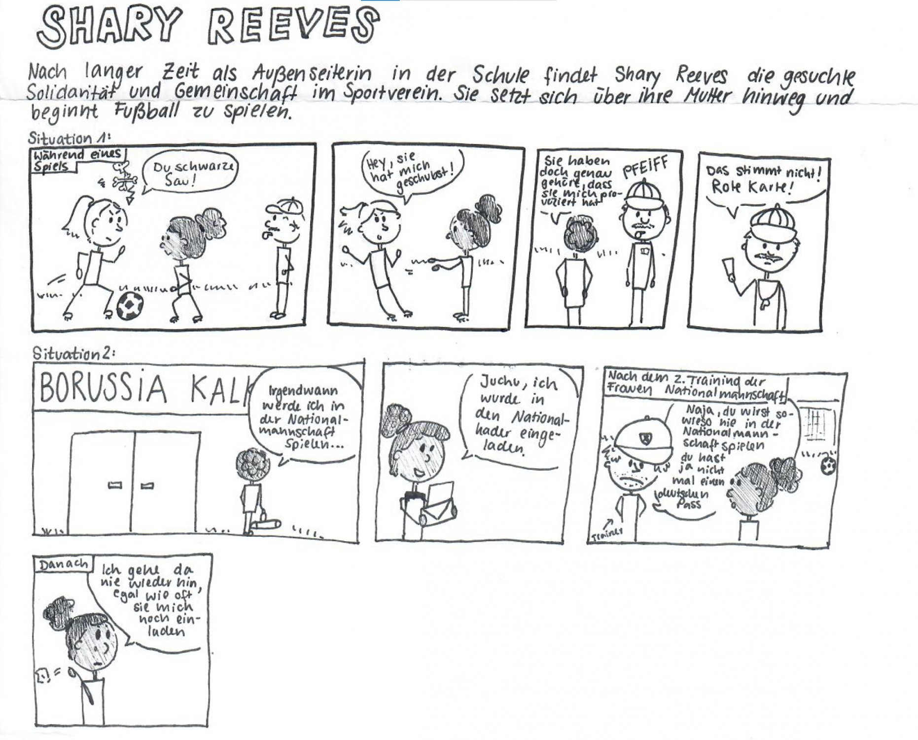 Für uns als Q2 stand in Deutsch die Thematik „Sprache und Öffentlichkeit“ an. Wie wir am Beispiel von Ausschnitten aus dem neuen deutschen Film „Schwarze Adler“ (2021) untersucht haben, spielt heutzutage Sprache bei der Verbreitung von rassistischen Ansichten und Ideologien eine zentrale Rolle, genauso wie in früheren Zeiten. Egal ob von Teilen der Medien, von Zeitungen, in politischen Reden oder sogar bei Fangesängen im Stadion, werden Menschen mit dunkler Hautfarbe regelmäßig beleidigt und/oder diskriminiert. Genau hiervon berichten im o.g. Film Fußballspieler*innen im weißen DFB-Trikot wie Jérôme Boateng, Jordan Torunarigha, Shary Reeves oder Gerald Asamoah.