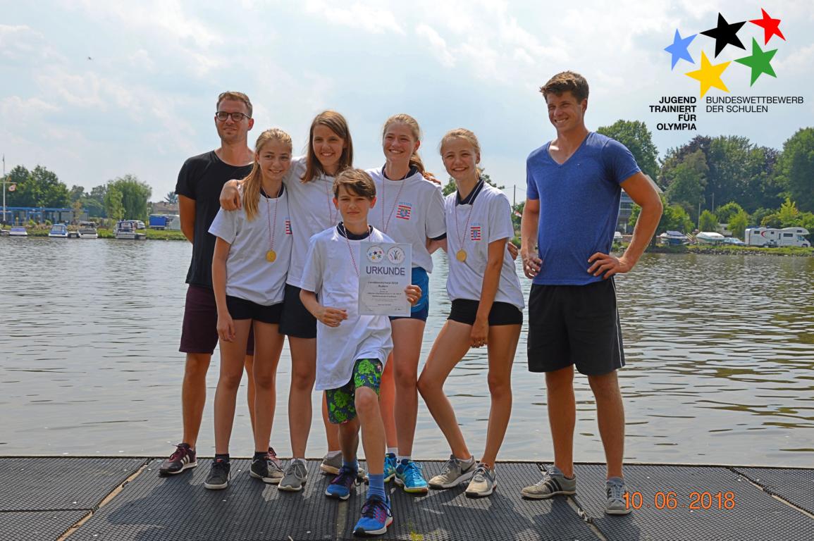 Ein herzlicher Dank geht an Herrn Kart, Leiter des Schulruderzentrums, der in der letzten Fachkonferenz das Schulprojekt Rudern den Sportkolleginnen und Kollegen vorstellte und alle sofort davon begeisterte. Ein Woche war sein Team im Sportunterricht der Jahrgangsstufe 7 mit ihren Ruderergometern. Zahlreiche Schülerinnen und Schüler nahmen daraufhin das Angebot wahr und schnupperten beim Rudern herein. Die oben genannten Schüler qualifizierten sich für den Landesentscheid.