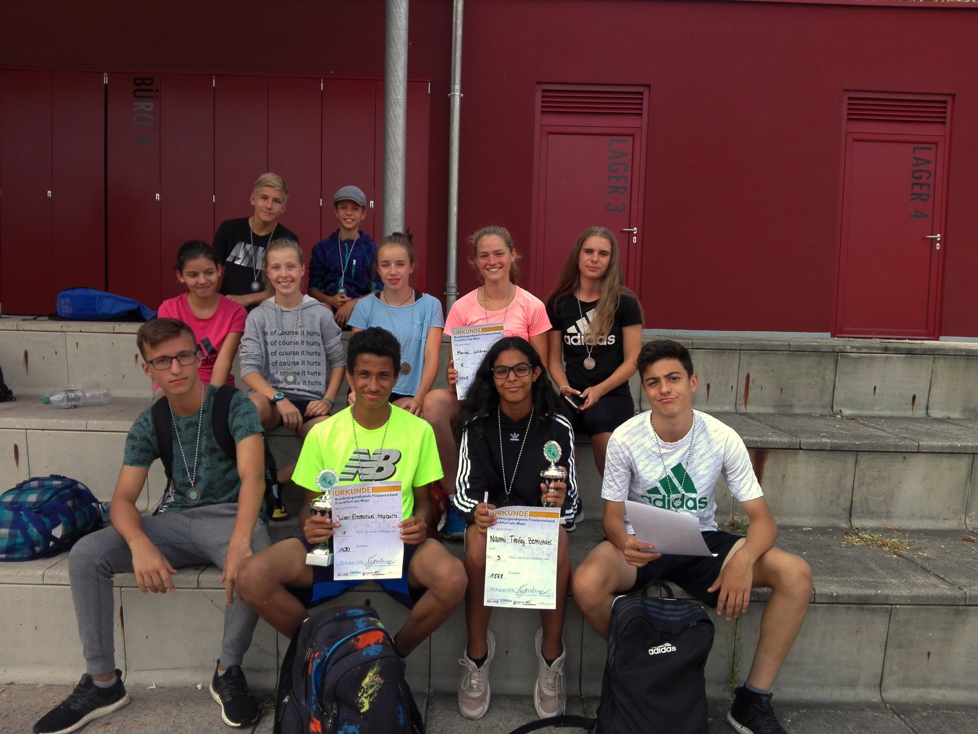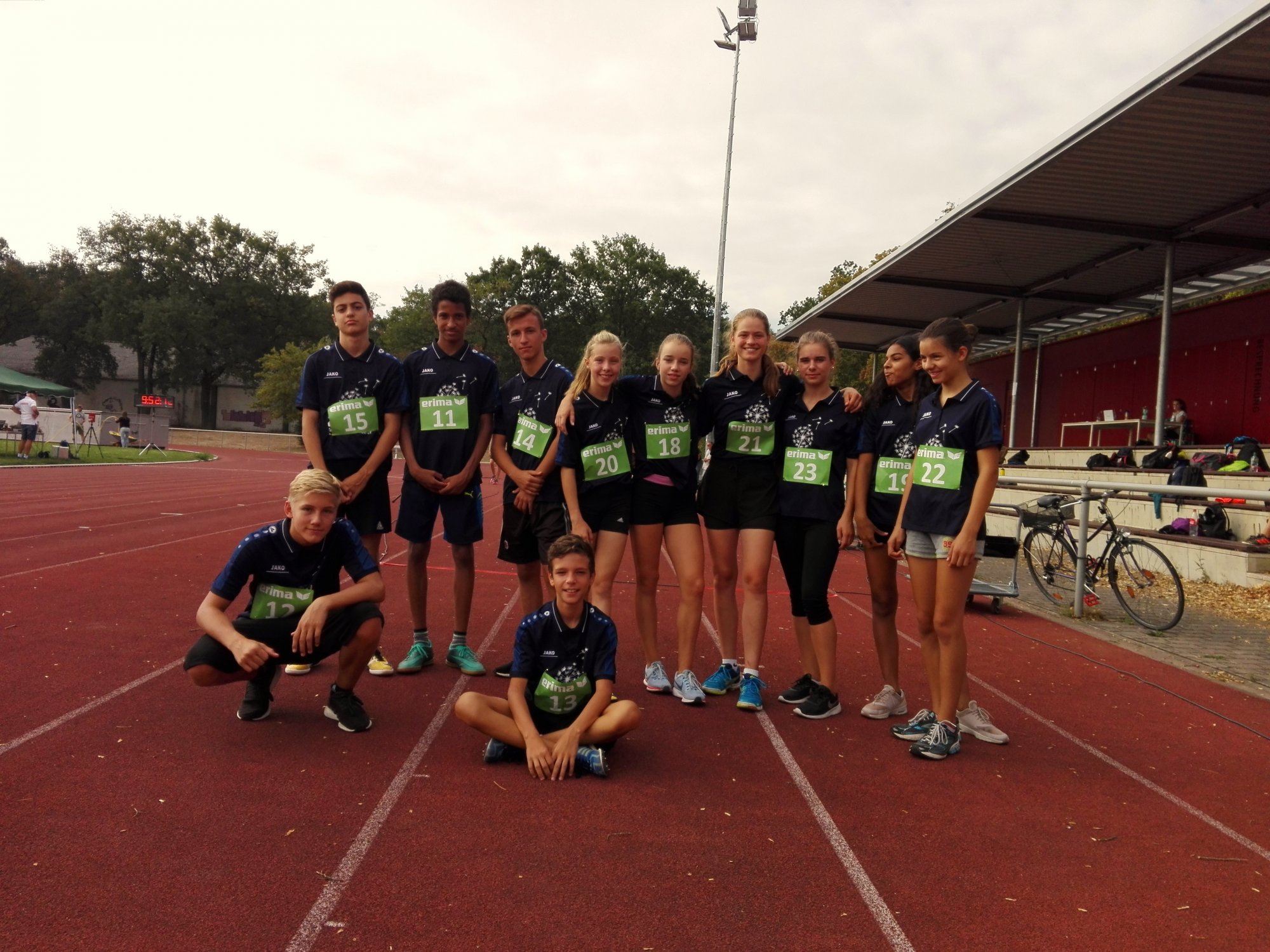 Ursprünglich sollten ausschließlich die SiegerInnen ihrer Jahrgangsstufen bei den schulinternen Bundesjugendspielen (BJS) für den Wettkampf gemeldet werden. Weil im Vorfeld aber schnell klar war, dass einige Schulen mit ihren SchülerInnen nicht teilnehmen würden, durfte ich nach Rücksprache mit Gianluca unsere Top 3 der jeweiligen Jahrgangsstufe melden.