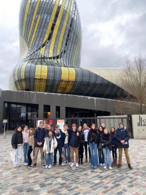 Im Zeitraum vom 12.01.23 bis zum 01.02.23 waren der Französisch-LK der E1 sowie einige Schülerinnen anderer Französischklassen zum Austausch mit Betriebspraktikum in Pessac, einem Vorort von Bordeaux in Südwestfrankreich.
