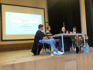 Gerhard Wiese, welcher Staatsanwalt bei den Frankfurter Auschwitz-Prozessen war, kam am 15.12.2022 zu uns an die Schule, um als Zeitzeuge mit den Schülerinnen und Schülern der Jahrgangsstufe Q3 über seine Erlebnisse und Erfahrungen von damals ins Gespräch zu kommen. Gerhard Wiese wurde 1928 in Berlin geboren. Im Jahre 1962 wurde er einer von drei Staatsanwälten in den Auschwitz-Prozessen ...
