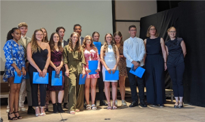 Bilder der Ansprache von Frau Nicola Beer, Vizepräsidentin des Europäischen Parlaments, von Emmanuel Kutschera und Lennart Zimmer, die von ihren Erlebnissen aus dem Bili-Unterricht berichten, von glücklichen und erwartungsfreudigen Abibacheliers, von musikalischen Beiträgen des Chors der Schule und Schülerinnen aus der Q1 Französisch bilingual ...