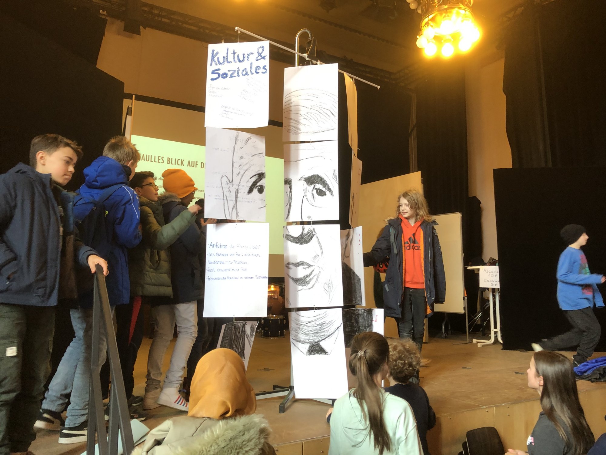 Der Kunst-LK der Q1 enthüllt in 3 Pausen 3 Leinwände und beschert der Schulgemeinschaft damit einen kleinen Adventskalender