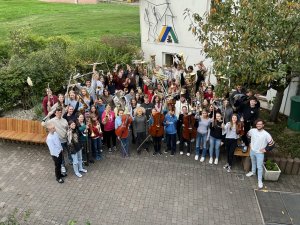 Zur Vorbereitung der Weihnachtskonzerte und nach langer Corona-Pause konnten wir Anfang November endlich wieder auf Probenfahrt in die Jugendherberge Oberbernhards fahren, um die Stücke für das Weihnachtskonzert vorzubereiten. Mit dabei waren Brass Band, Big Band und das Orchester. Neben den Proben blieb aber auch noch Zeit für Lagerfeuer, Tanzkurse und Freizeit ...