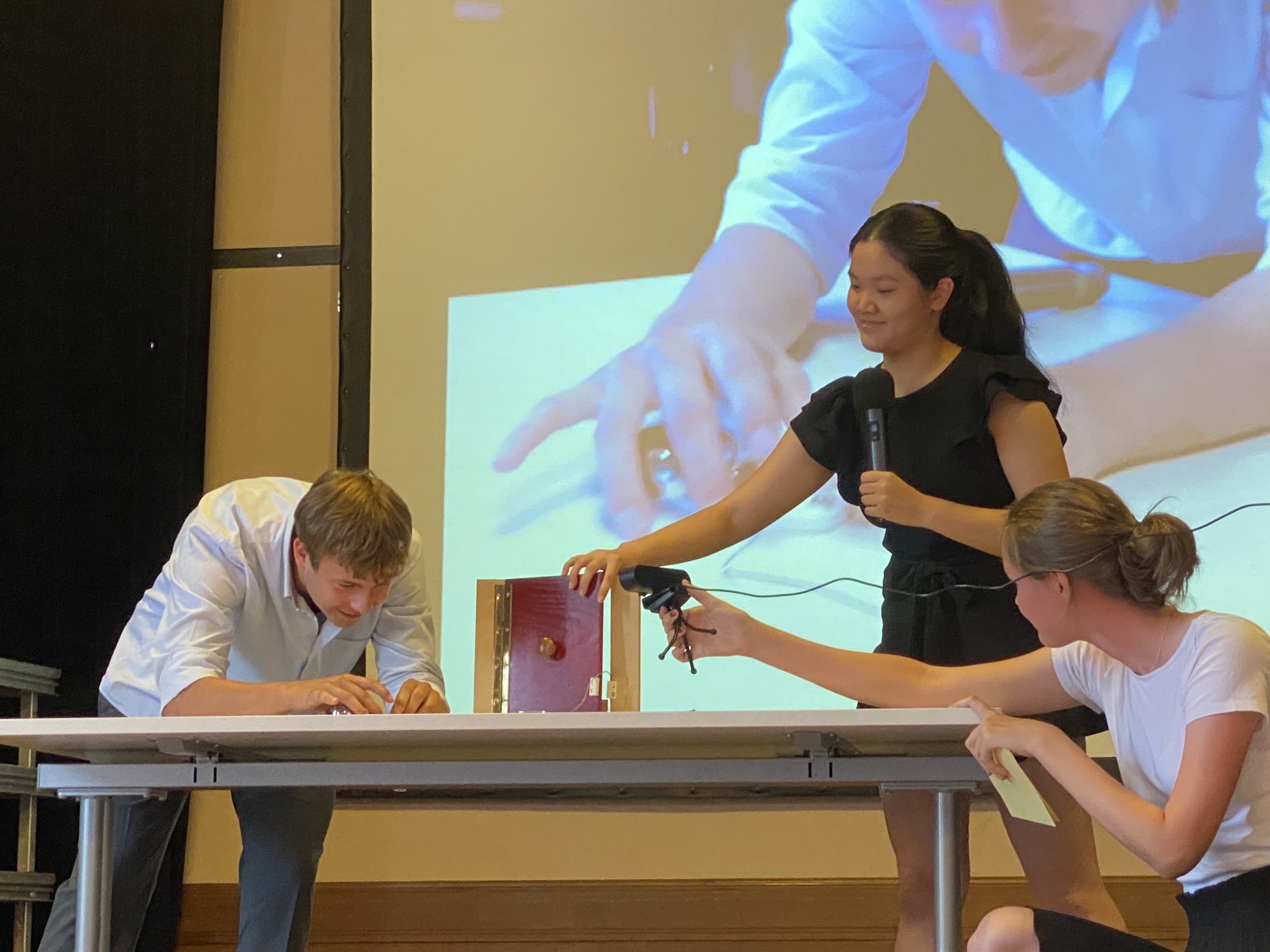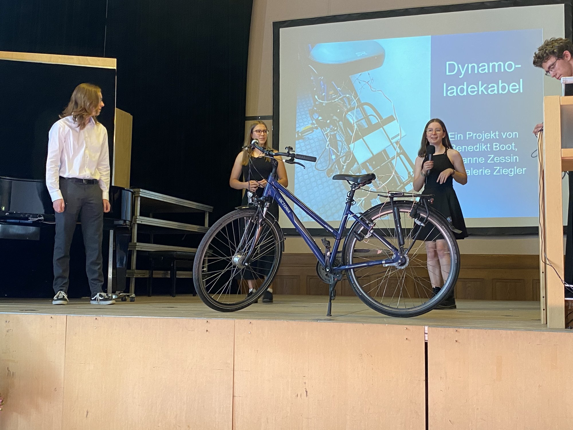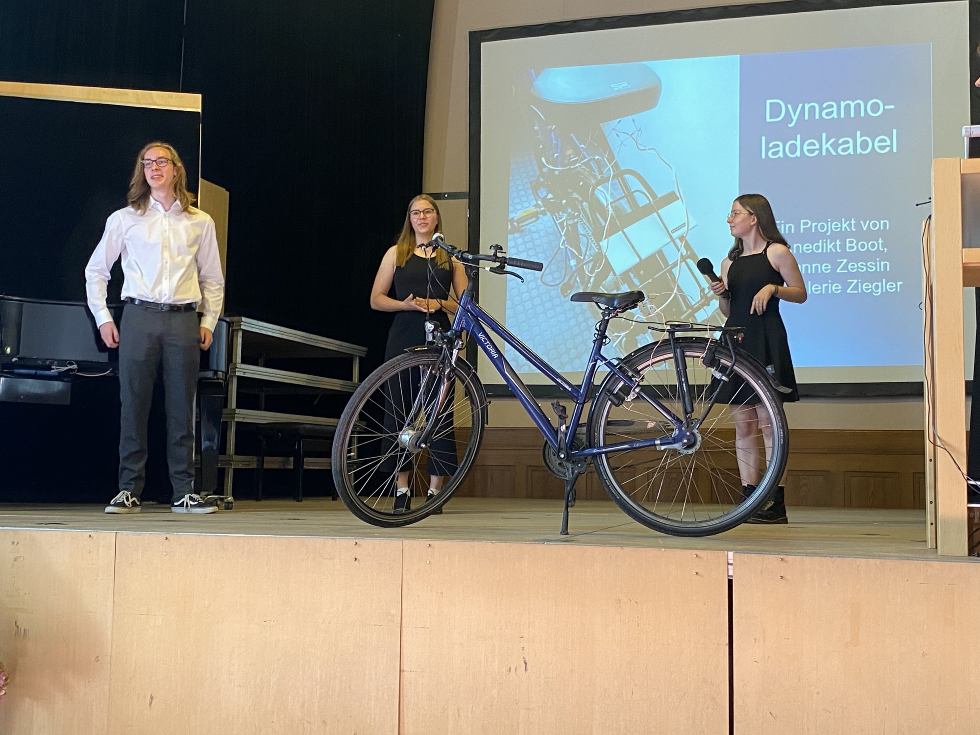 Die Abschlussveranstaltung der diesjährigen Junior - Ingenieur:innen fand unter der Teilnahme von Eltern, Schülerinnen und Schülern und Lehrkräften statt. Zur feierlichen Einstimmung spielte Tiffany Goldstein (Q2) die 7. Novelette von Robert Schuhmann auf dem Piano. Christoph Maitzen, der Fachbereichsleiter der Naturwissenschaften der Ziehenschule, und Tobias König von der Stiftung Polytechnische Gesellschaft Frankfurt, begrüßten das Publikum. Lukas Ziebarth (JIA-Absolvent 2020) führte durch das Programm. Von den jungen Erfinder:innen wurden fünf Projekte vorgestellt, die über das letzte Halbjahr mit vorher erlangtem Wissen in den Bereichen Sensorik, Motorik und Elektronik in Kleingruppen erarbeitet wurden.