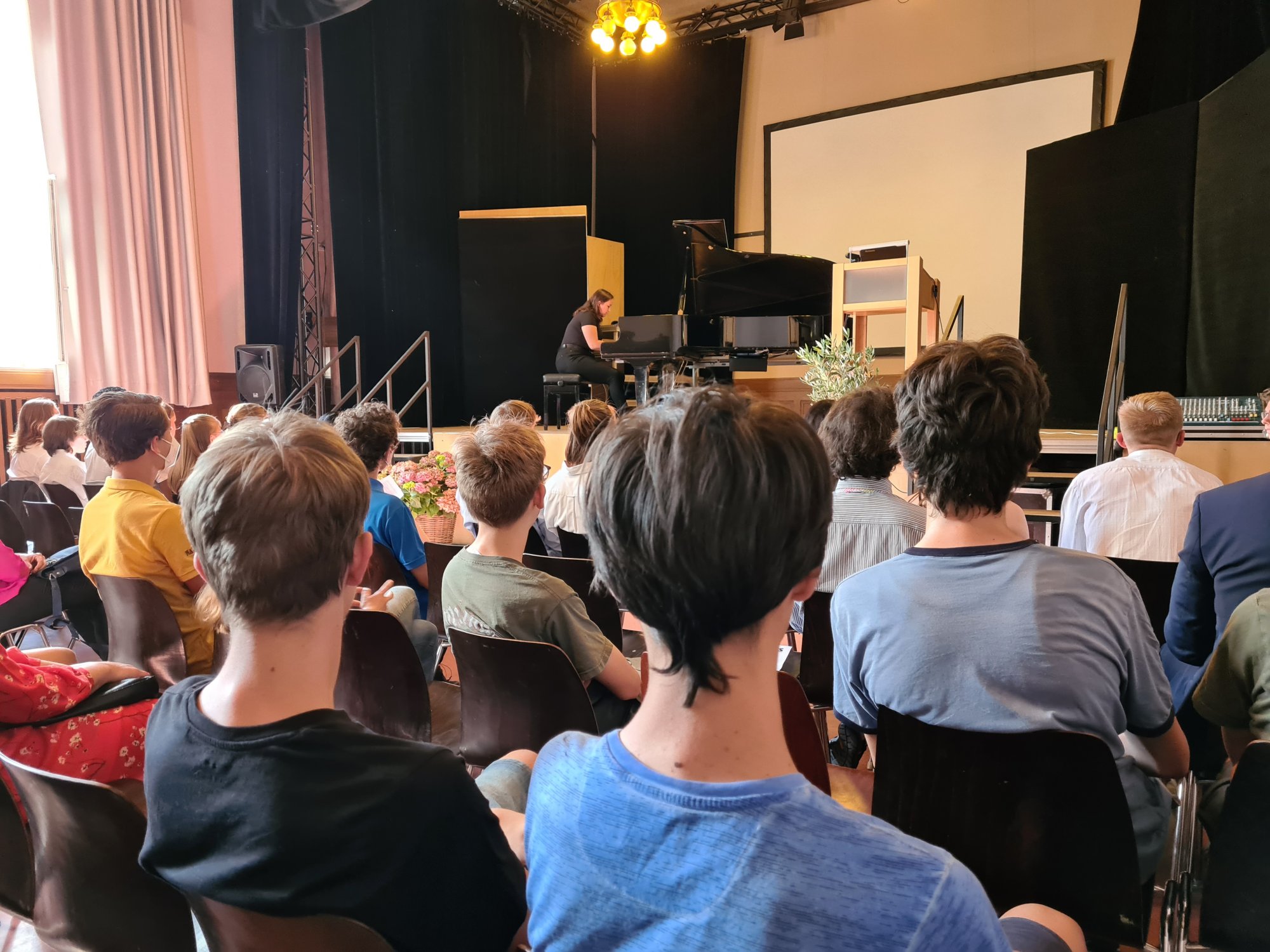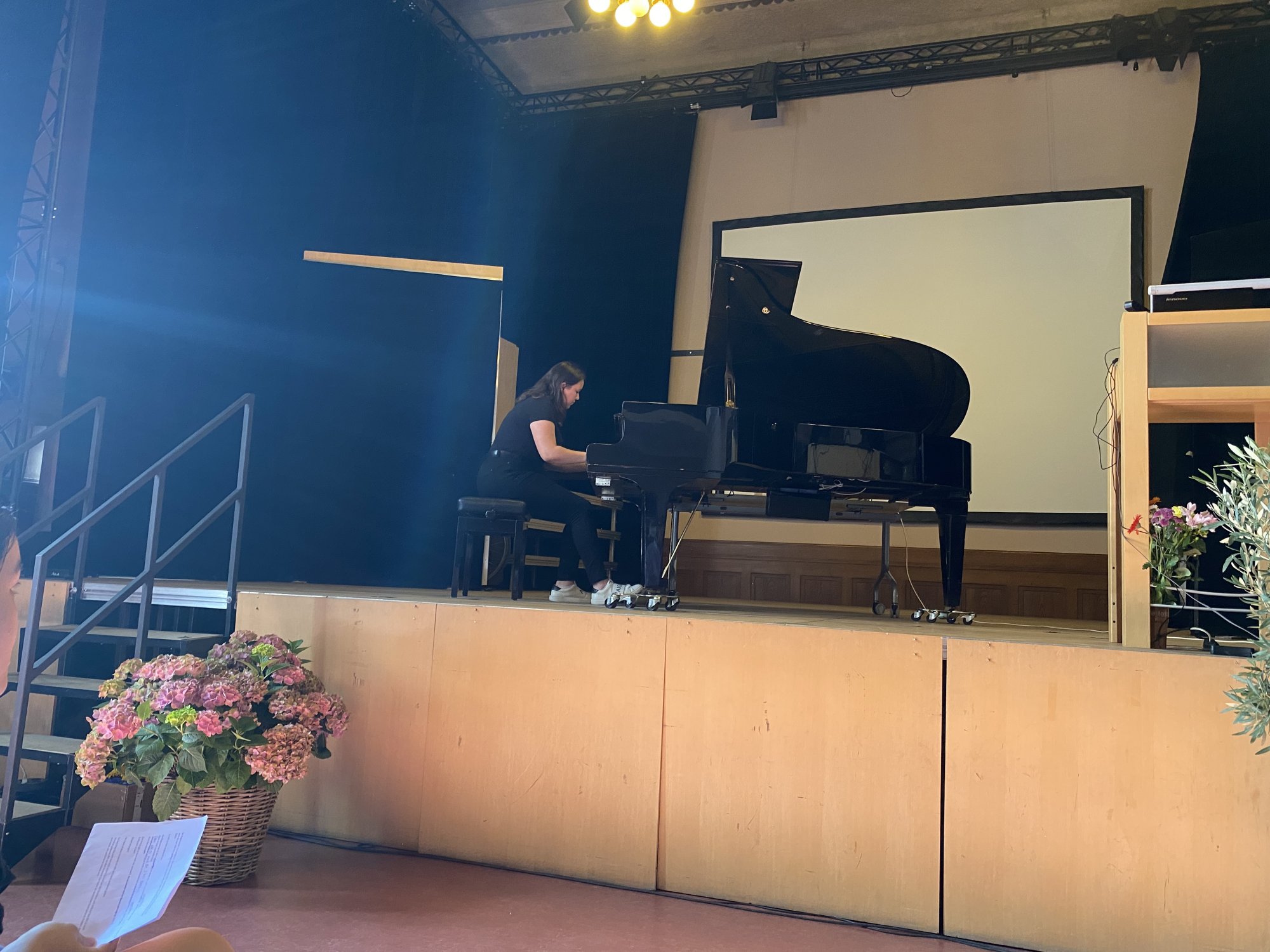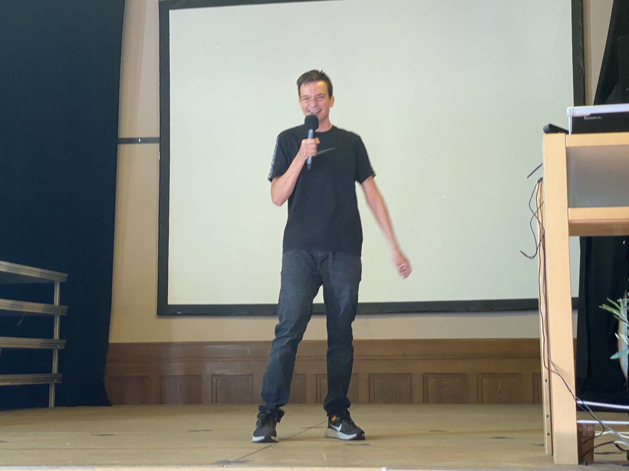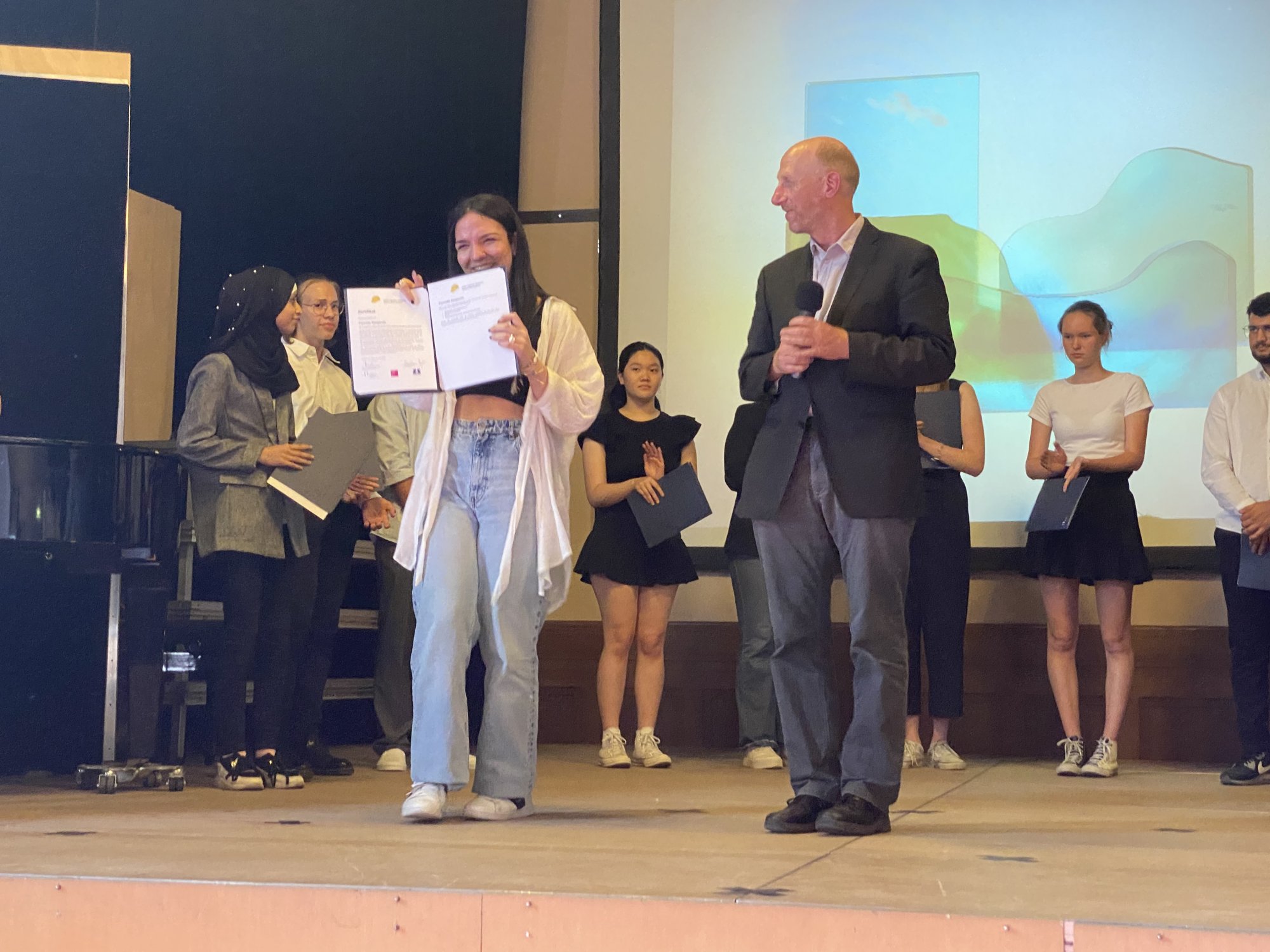 Die Abschlussveranstaltung der diesjährigen Junior - Ingenieur:innen fand unter der Teilnahme von Eltern, Schülerinnen und Schülern und Lehrkräften statt. Zur feierlichen Einstimmung spielte Tiffany Goldstein (Q2) die 7. Novelette von Robert Schuhmann auf dem Piano. Christoph Maitzen, der Fachbereichsleiter der Naturwissenschaften der Ziehenschule, und Tobias König von der Stiftung Polytechnische Gesellschaft Frankfurt, begrüßten das Publikum. Lukas Ziebarth (JIA-Absolvent 2020) führte durch das Programm. Von den jungen Erfinder:innen wurden fünf Projekte vorgestellt, die über das letzte Halbjahr mit vorher erlangtem Wissen in den Bereichen Sensorik, Motorik und Elektronik in Kleingruppen erarbeitet wurden.