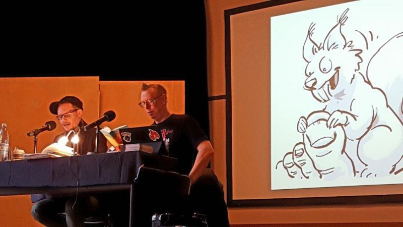 Nachdem sein Freund, ein Schauspieler, uns einen Teil aus einem seiner älteren Bücher vorgelesen hatte , wurde uns sein frisch geschriebenes Buch vorgestellt: "Luzifer Junior." Darin geht es um einen Jungen, Luzifer Junior, der der Sohn des Teufels ist. Das Problem ist nur, dass Luzifer Junior es gemein findet, wenn Menschen bestraft werden, und weil er immer zu „nett“ ist, wird er als Strafe von der Hölle auf die Erde geschickt, wo er viele Probleme hat. (Lina Khattabi, 6d)