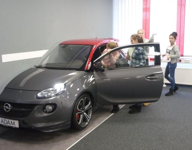 Im Rahmen der Berufsorientierung besuchten alle Schülerinnen und Schüler der achten Jahrgangsstufe in der Themenwoche vom Februar 2018 das Berufsinformationszentrum "Main-BiZ" Frankfurt. Neben Informationen zu über 450 Berufen hält „Main BiZ“ als Kompetenzzentrum für den Themenschwerpunkt „Mobilität und Logistik“ besondere Angebote zu diesem Schwerpunkt bereit. Gleich im Empfangsbereich werden die Besucher u.a. von einem Flugzeug mit Sitzgelegenheiten, einer Videowand auf einer Lkw-Ladefläche und einem Opel Adam begrüßt. Letzterer lädt zu einer Sitzprobe ein.