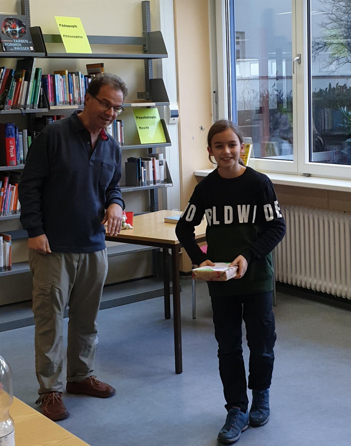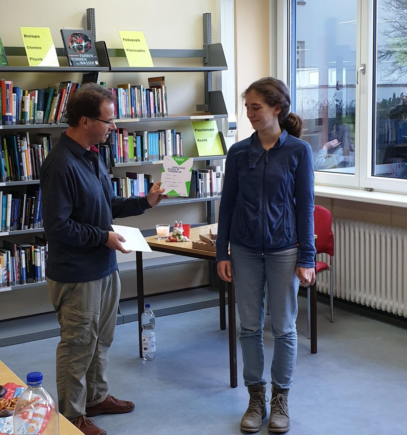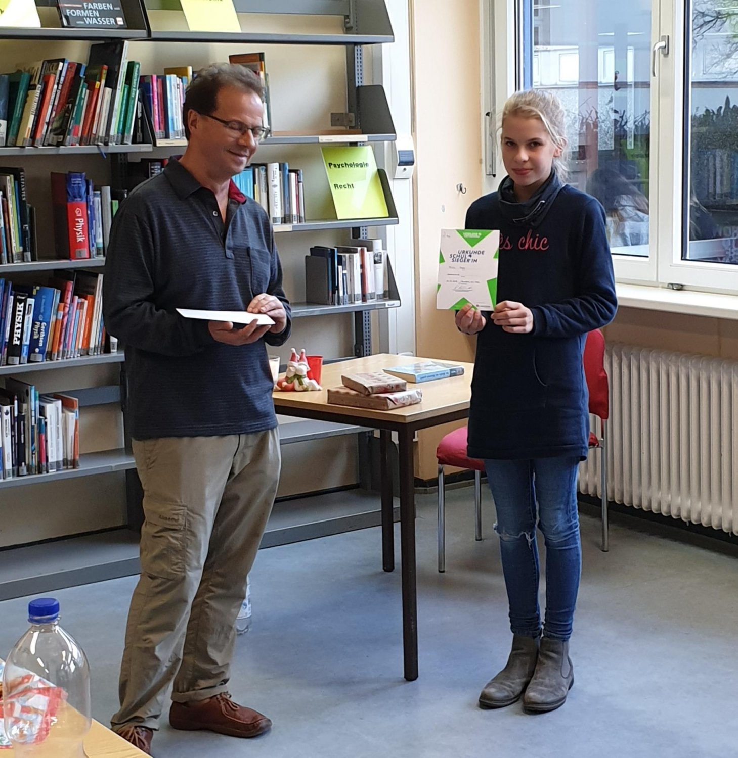 Die Sieger/innen wurden in der abschließenden Siegerehrung mit je einer Urkunde und einem Buchgeschenk geehrt. Als erster Gewinner darf Konrad Tiesler nun am Stadtentscheid teilnehmen. „Viel Erfolg, Konrad!“