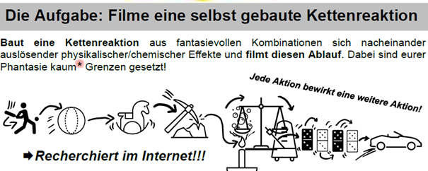 Beim ersten naturwissenschaftlichen Filmwettbewerb der Ziehenschule wurden 27 Videos von Schüler:innen gedreht. Die Aufgabe war dabei, in einer Kettenreaktion möglichst viele Energieformen in möglichst vielen Schritten kreativ ineinander umzuwandeln.