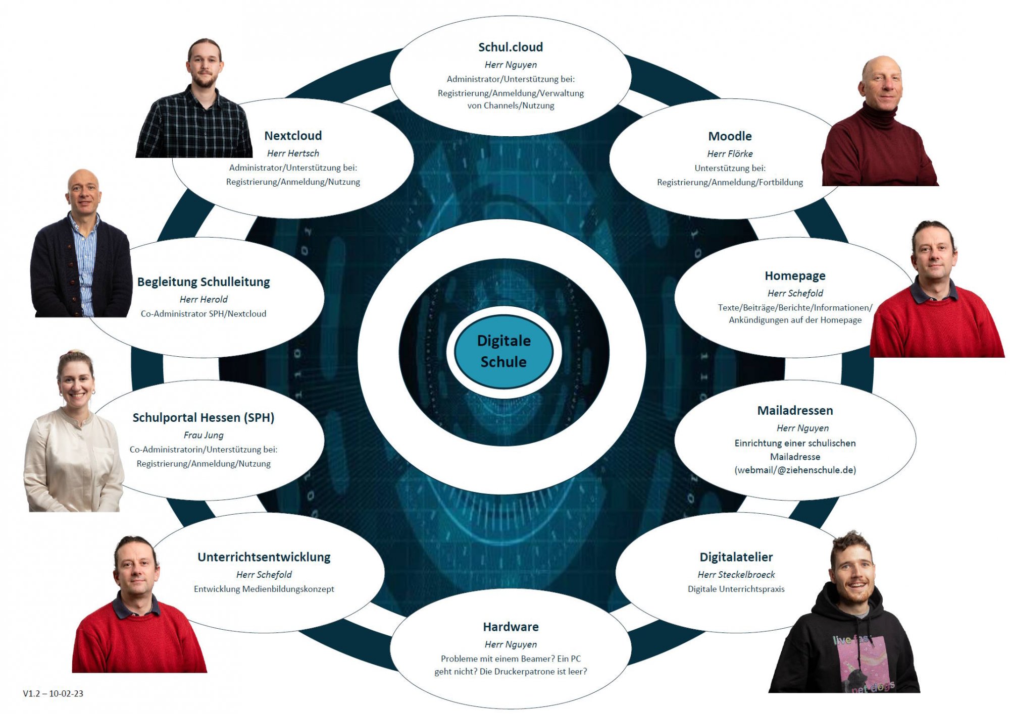 Wie kann das Lehren und Lernen an der Ziehenschule unter den Bedingungen der Digitalisierung nachhaltig gestaltet werden? Mit dieser Fragestellung setzen sich viele Mitglieder der Schulgemeinde auseinander. Zur Steuerung dieser Gestaltungsaufgaben gibt es Arbeitsgruppen und Ansprechpartner. Ein paar Gesichter aus dem Bereich "Digitale Schule" möchten wir Ihnen mit diesem digitalen Kompass vorstellen.