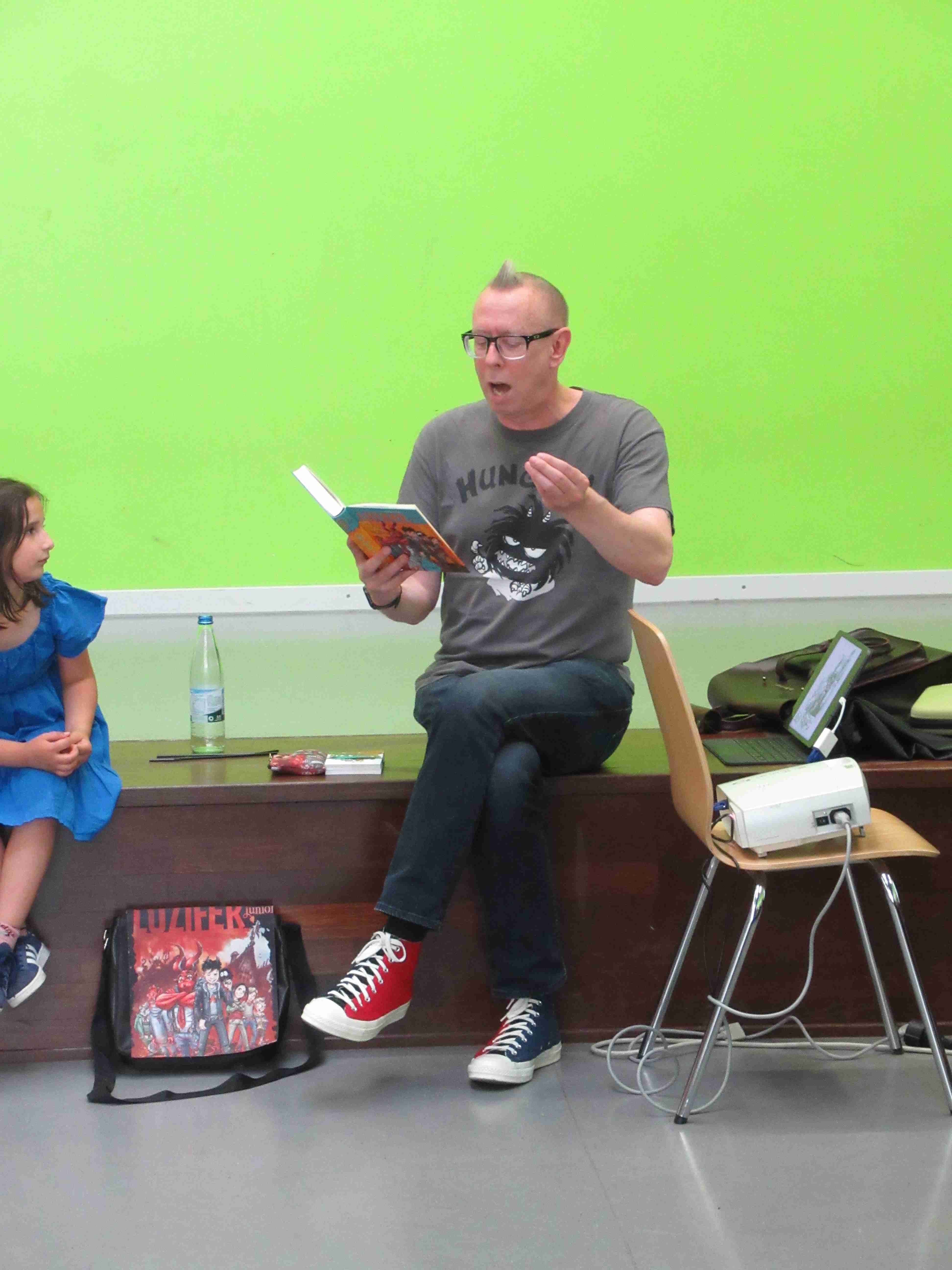 Ein besonderer Höhepunkt am Nachmittag war die Lesung von Jochen Till, der aus dem ersten Band (Zu gut für die Hölle) der Reihe „Luzifer junior“ vorgelesen hat.