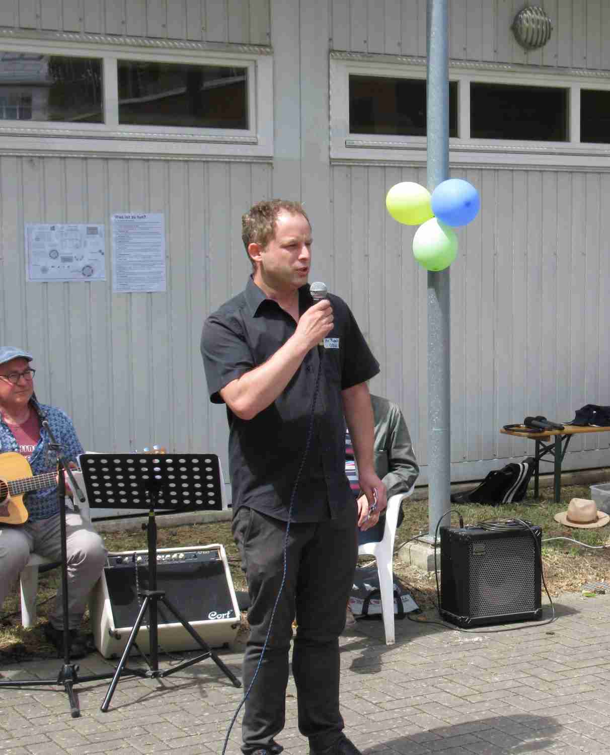 Das Elterncafè des Schulelternbeirates hat mit Kaffee, Waffeln und Kuchen sowie mit Bratwürstchen für das leibliche Wohl gesorgt. Zwei talentierte und ambitionierte Musiker sorgten für die akustische Untermalung.
