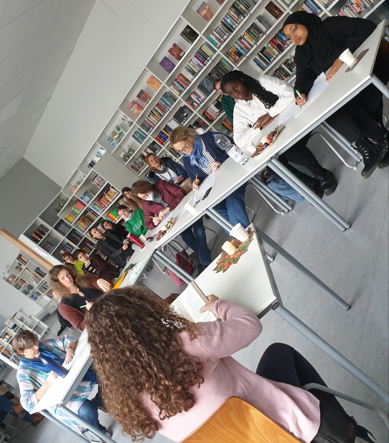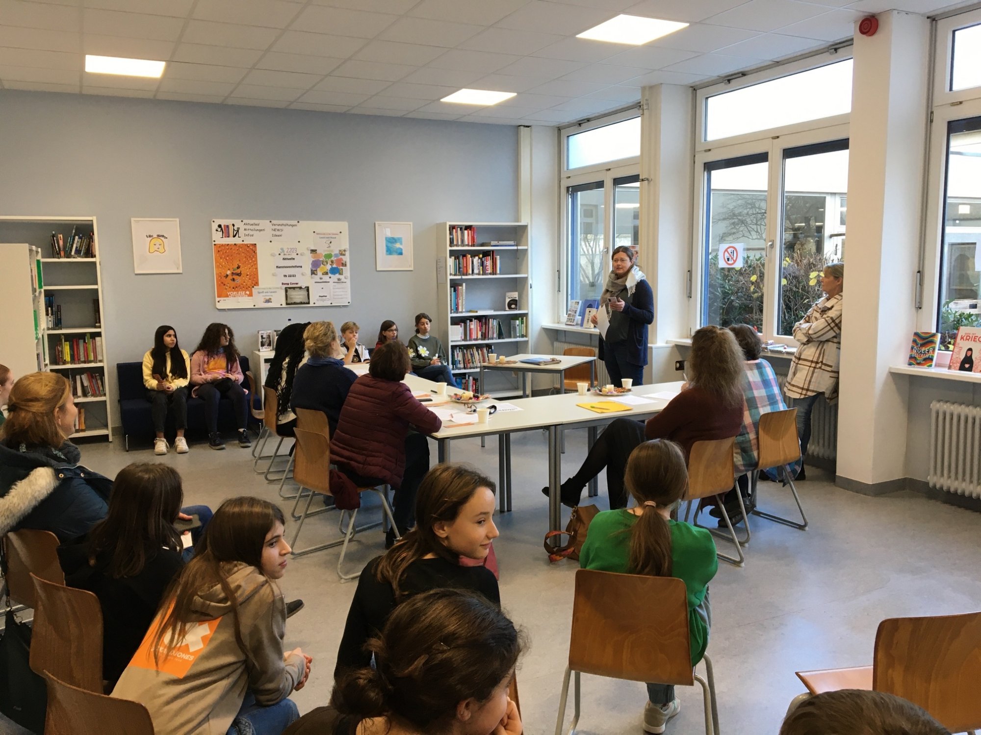 Am Mittwoch, dem 7. Dezember, waren in unserer SchüBü alle Augen auf fünf Schüler:innen gerichtet: Damla Eren (6a), Neva Rodriguez Arranhado (6b), Anouk Scheid (6c), Golda Tiesler (6d) und Juri Vetter (6e). Sie alle hatten ihre Lieblingsbücher mitgebracht, um uns daraus vorzulesen.