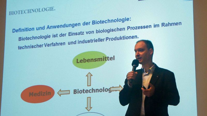 Im Rahmen einer Veranstaltung zur Berufs- und Studieninformation gab Herr Prof. Dr. C. Griesbeck am 27.11.2017 den Schülerinnen und Schüler der Q3 die Möglichkeit, über den Tellerrand des schulischen Wissens zu blicken. Dabei wurde zum einen das interdisziplinäre Forschungsgebiet der Biotechnologie vorgestellt und zum anderen wurde über die hervorragenden Studienbedingungen am Management Center Innsbruck (MCI) informiert.