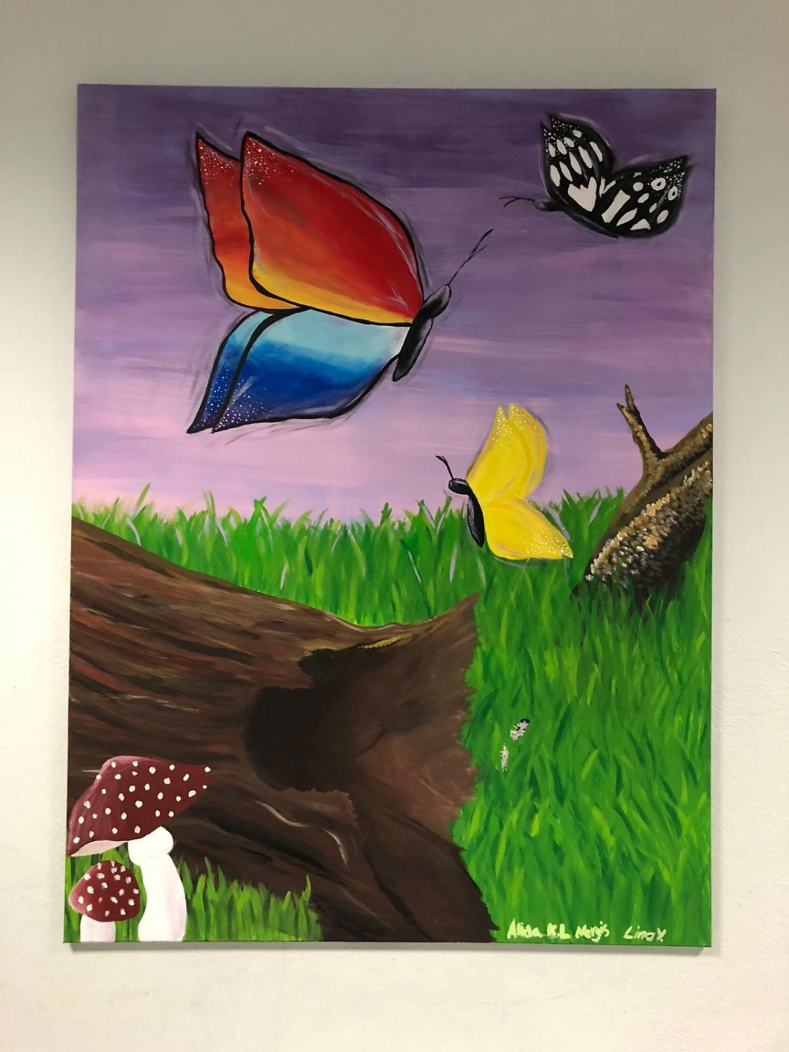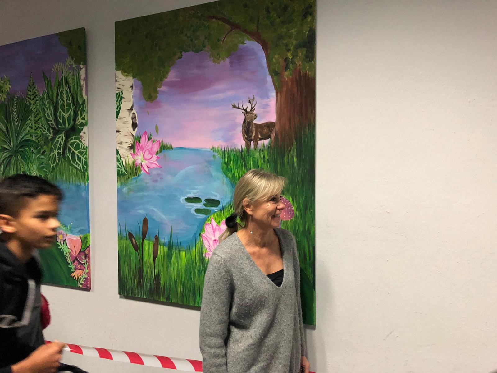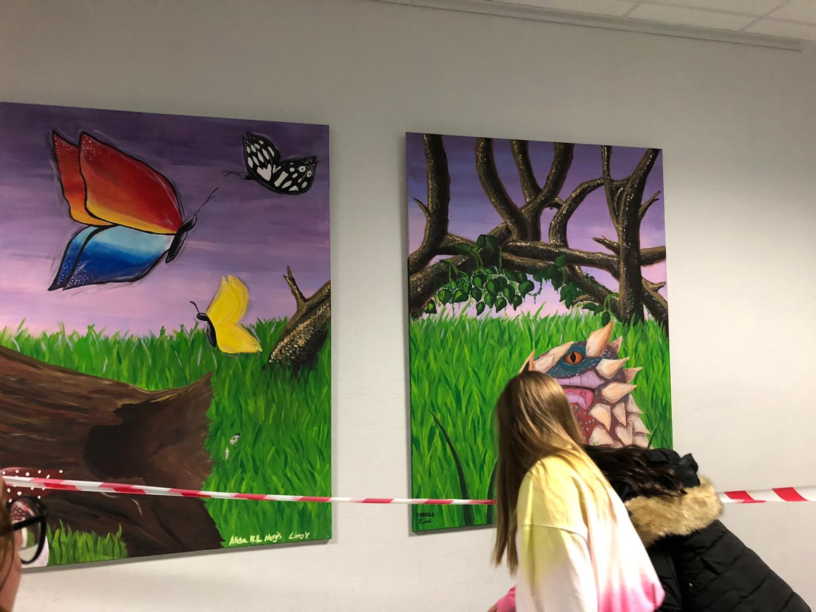 Die Gemälde, die der Kunst-Leistungskurs für den Gang des Altbaus gemalt hatte, wurden am 6.11.2019 in der 2. großen Pause im Gang des Altbaus eingeweiht. Alle Interessierten waren herzlich eingeladen.