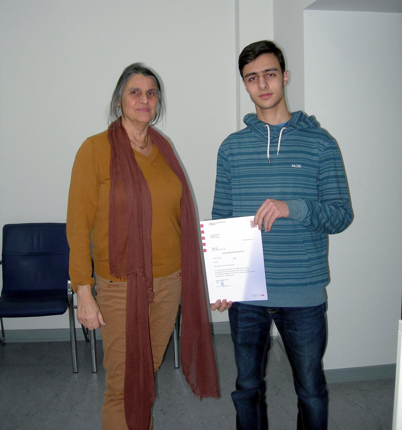 Daniel Kopisitskiy gewann einen ersten Preis beim Bundeswettbewerb Mathematik. Für die Schulleitung übereichte der Stellvertretende Schulleiter, Herr Jürgens, Daniel die Urkunde.