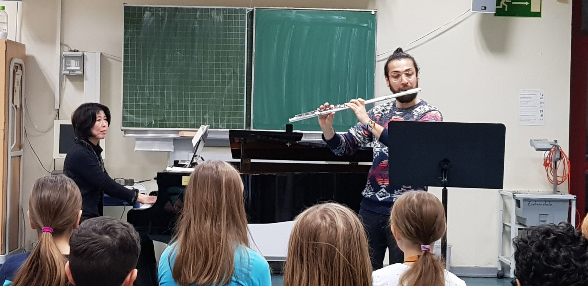 Unser besonderer Dank gilt Flötenprofessorin Stephanie Winker, die diesen eindrucksvollen Auftritt in der Ziehenschule mit ihren Studierenden vorbereitet hat!