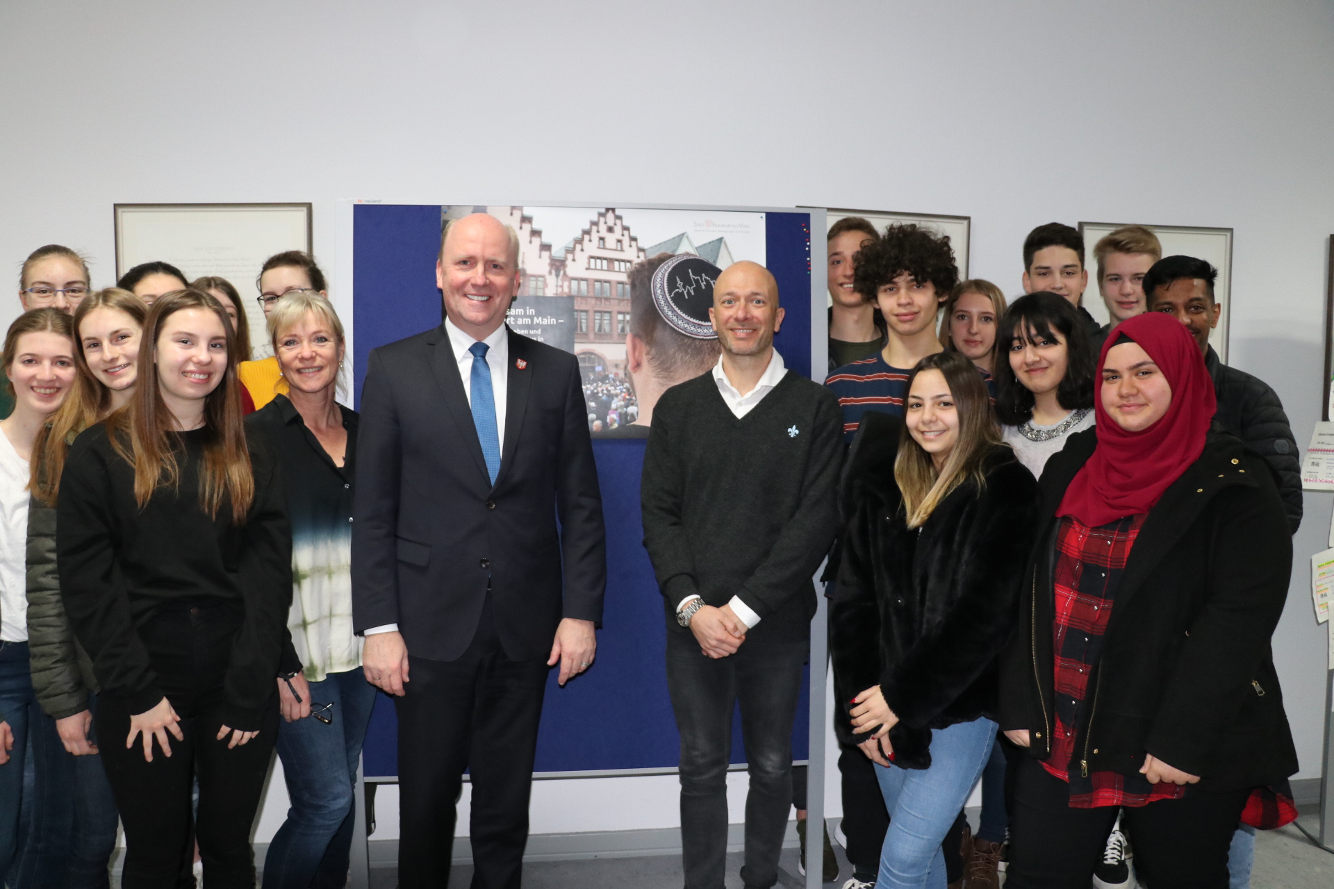 Bürgermeister Uwe Becker hat als ehemaliger Ziehenschüler ein besonderes Verhältnis zu unserer Schule. Nicht nur deswegen, sondern insbesondere auch, weil wir seine Initiative so unterstützenswert finden, war er am 05.04. bei uns zu Besuch, um im Beisein der Leistungskurse PoWi (Herold) und Deutsch (Rogler) das für seine Initiative entworfene Plakat zu präsentieren und direkt aufzuhängen!