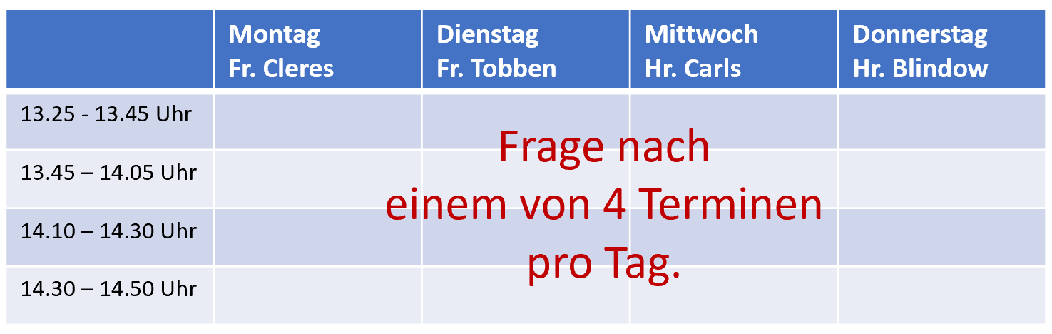 - Du erhältst eine Antwort mit einem möglichen Termin an dem Tag oder eine Absage