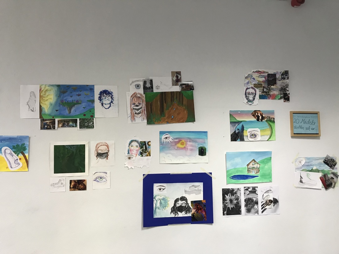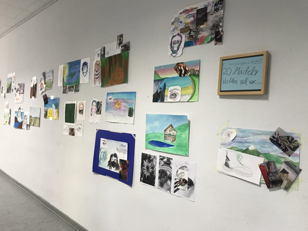 Die 20 Mädchen aus dem neuen Vorleistungskurs Kunst haben sich in den ersten 2 Schulwochen in unterschiedlichen Übungen direkt und indirekt portraitiert. Ihre Ergebnisse seht ihr derzeit in Form von farbenfrohen Collagen im Lehrergang.