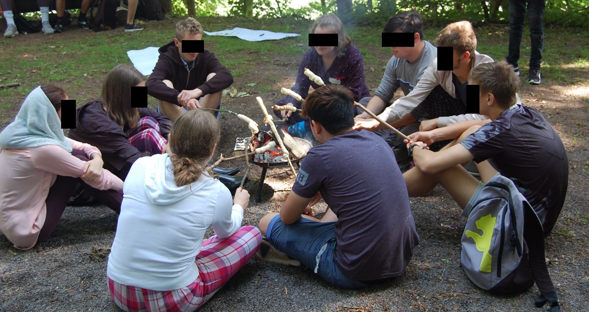 Am zweiten Tag sind wir dann in den Wald gefahren und haben noch ein paar neue Dinge besprochen. Anschließend wurden wir in Gruppen aufgeteilt und haben dann das, was wir gelernt haben, dann noch einmal praktisch wiederholt. Am Ende haben wir noch ein Lagerfeuer gemacht.