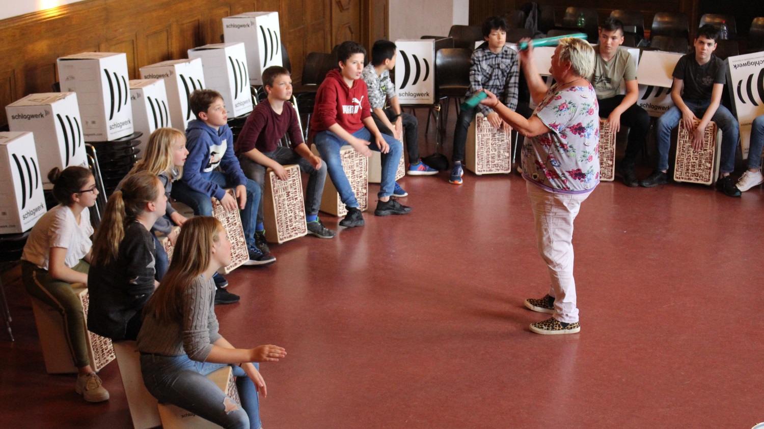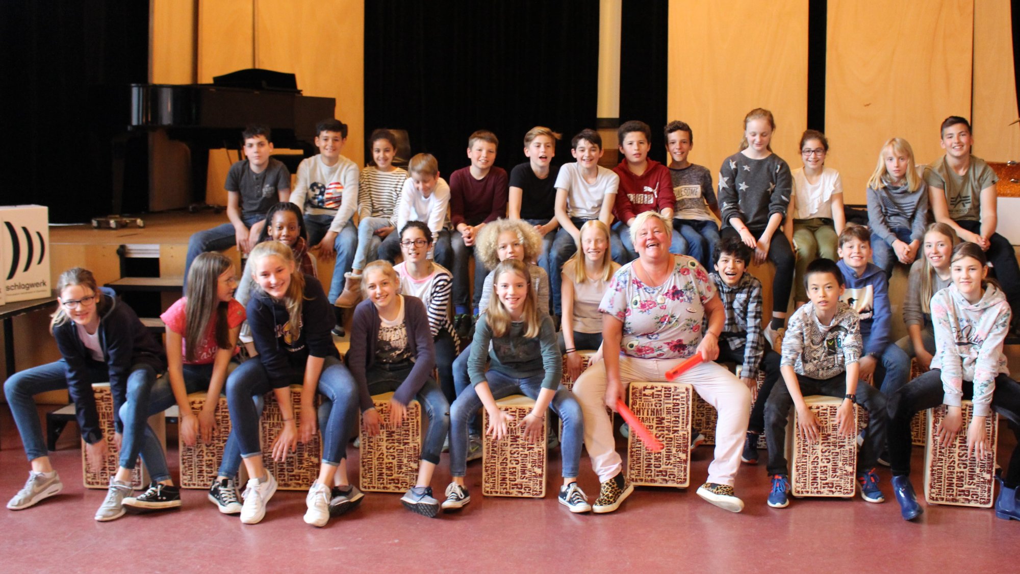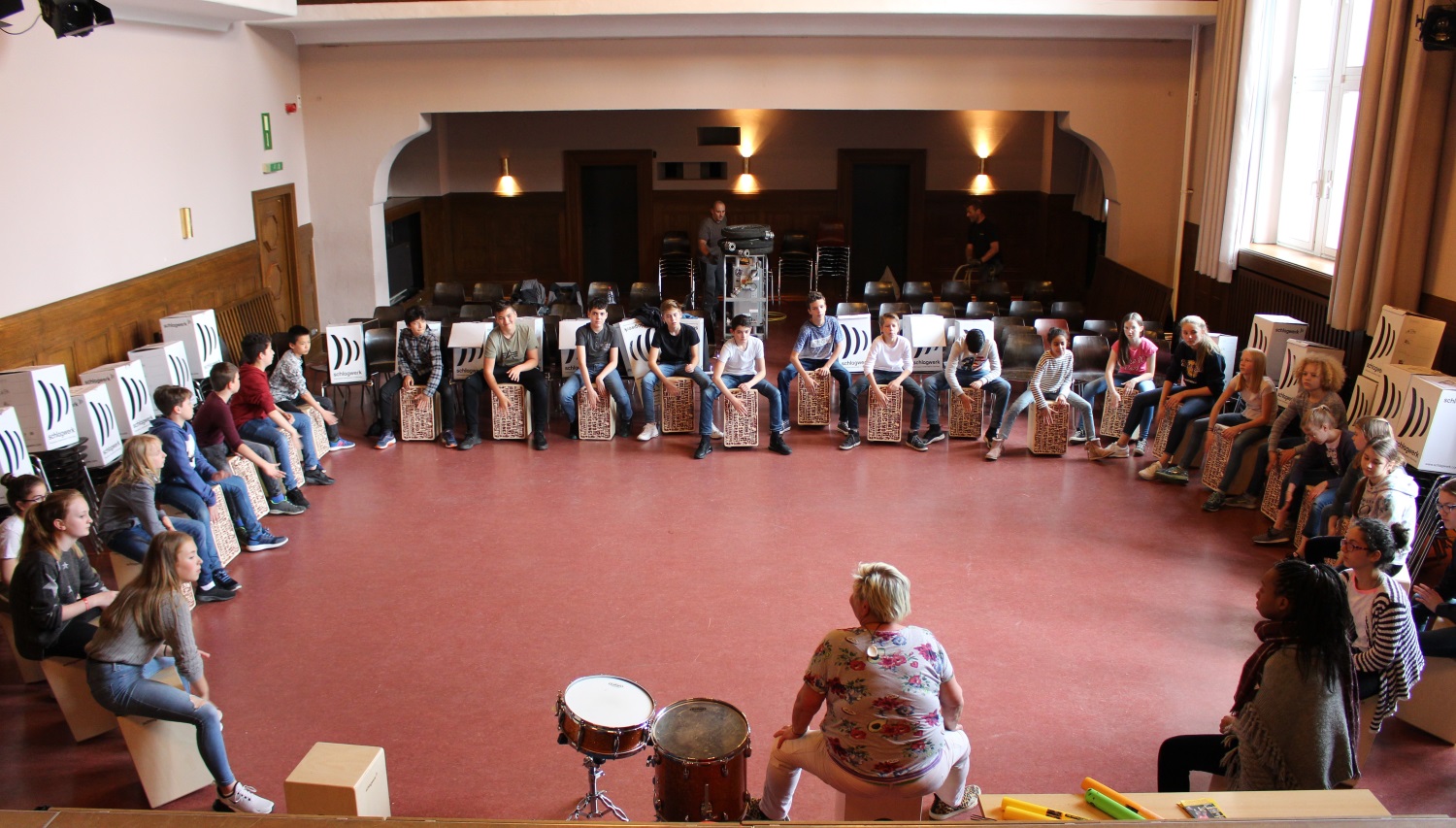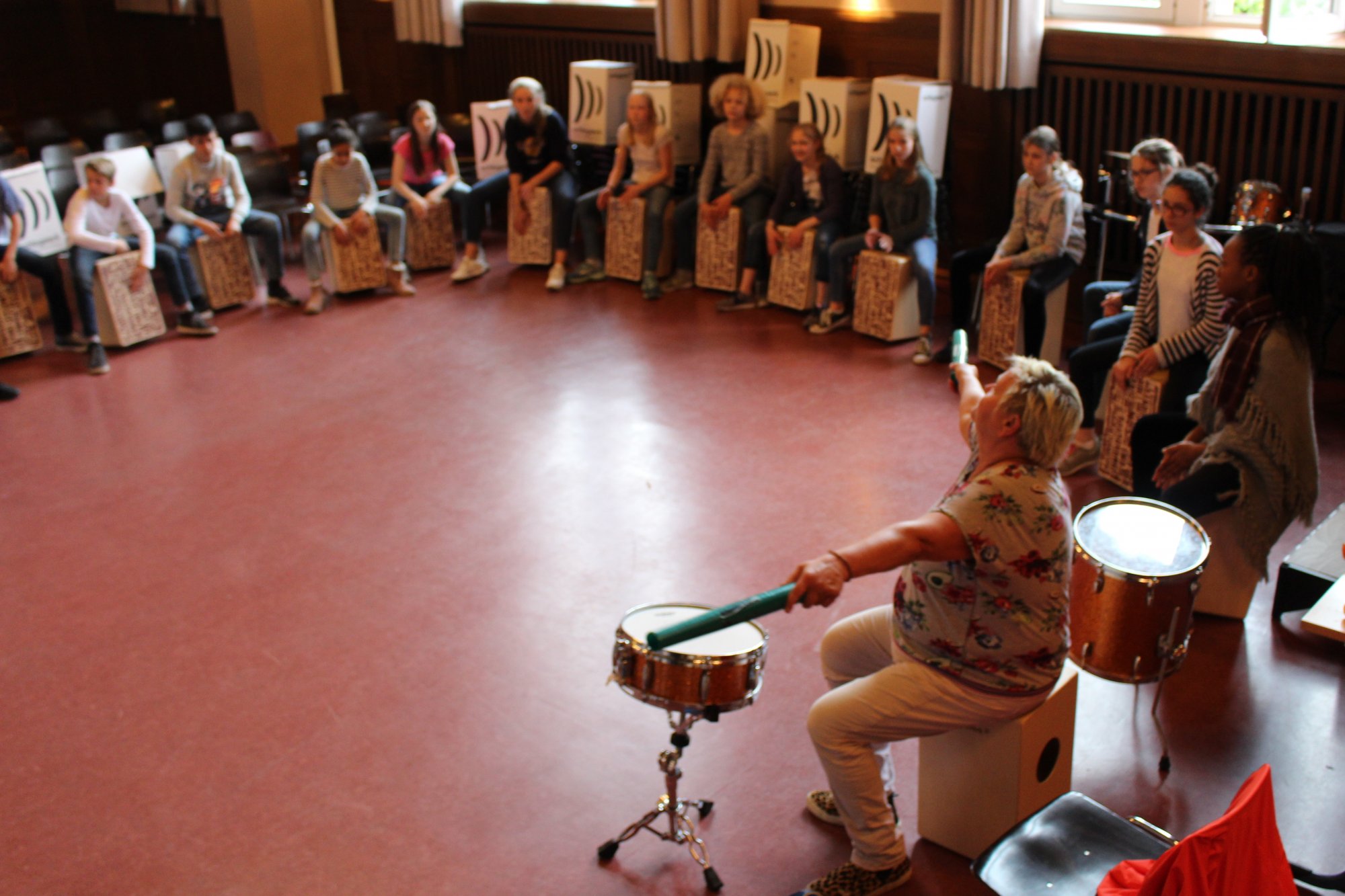 Im Rahmen des „Musik Monat Mai!“ bieten Professoren und Dozenten der Hochschule für Musik (FfM) Workshops und Projekte an Schulen an. Am 21.5.2019 war Anne Breick zu Gast in der Klasse 6d der Ziehenschule, um wie sie sagt, die Kinder mit Rhythmus zu „infizieren“. Die Dozentin, die im Frankfurter Kulturleben sehr präsent ist, musizierte mit 27 Kindern auf Cajons, eine kleine Kiste aus Peru, die man wie ein kleines Schlagzeug benutzen kann. Die Kinder waren hellauf begeistert. Wir hoffen, dass Anne nächstes Jahr im Mai wieder zu uns an die Ziehenschule kommt!