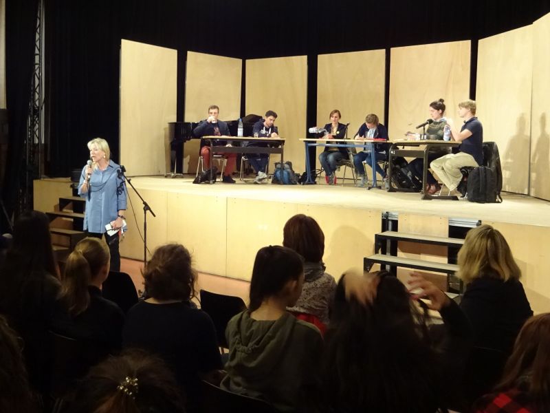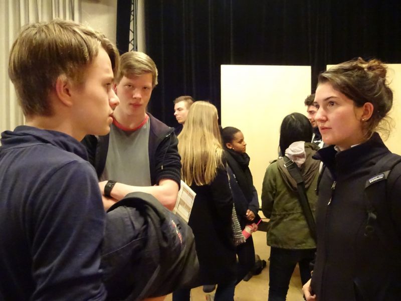 Die Teilnehmer der Diskussion waren Lino Leudesdorff (ehemaliger Ziehenschüler mit Abitur 2008 und Sprecher der Jusos Frankfurt), Leopold Born (Vertreter der Jungen Union), Katharina Schreiner (Direktkandidatin der FDP), Malena Todt (Vertreterin der Grünen Jugend) und Erik Wolf (Vertreter von Solid Linksjugend). Die Schülerinnen und Schülern der Leistungskurse Politik und Wirtschaft beteiligten sich mit vielen Fragen an dem Podium und es entwickelte sich eine rege Diskussion. Vor allem zum Thema Digitalisierung an Schulen, Umwelt und mehr Sicherheit im öffentlichen Raum gab es eine Vielzahl von Beiträgen und Ideen.
