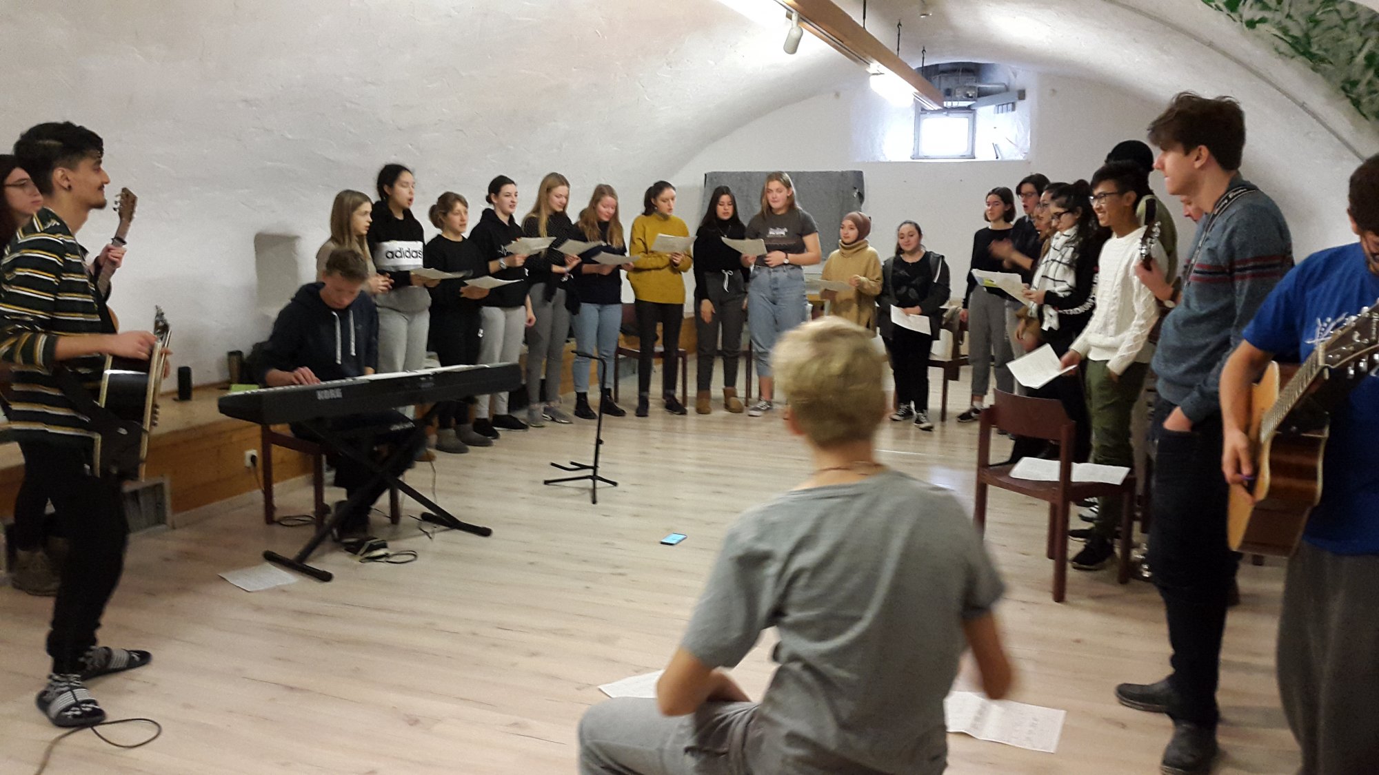 Beim Betreten der Burg Breuberg schallte einem ein wunderbar vielfältiger musikalischer Klang entgegen. Die Entscheidung, welches Ensemble man nun zuerst besuchen sollte, war alles andere als einfach. Knapp 120 Schülerinnen und Schüler, überwiegend aus den Jahrgängen 8 bis 13, betreut von sieben Lehrkräften, probten vom 28.11. bis 30.11. in der Burg Breuberg voller Konzentration, Motivation und Enthusiasmus in vier verschiedenen Ensembles für die bevorstehenden Weihnachtskonzerte am 12.12. und 13.12. ihrer Schule.