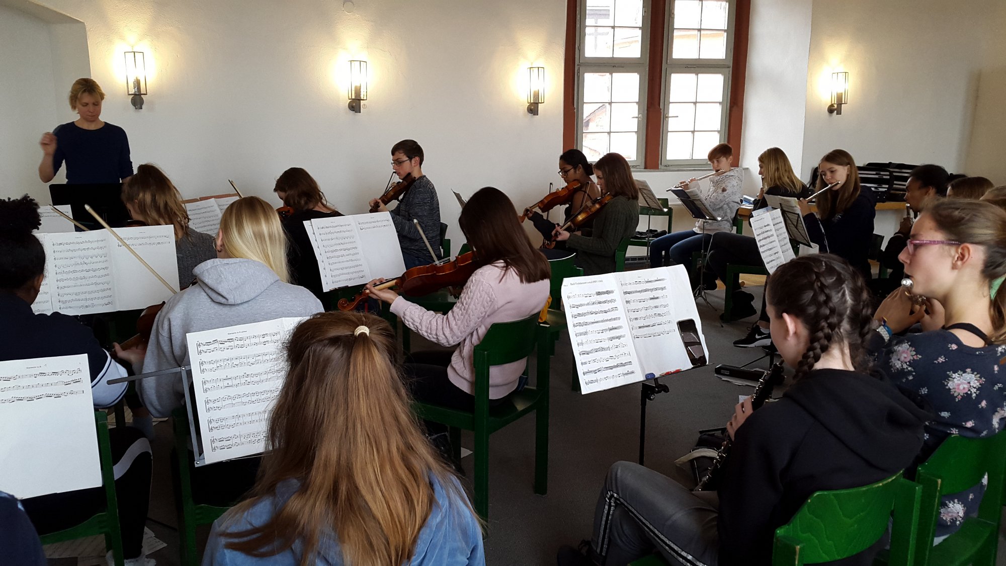 Die größte Gruppe, das Orchester mit ca. 45 Musikerinnen und Musikern übte fleißig unter der Leitung von Frau Grabner. Neben dem Musizieren im gesamten Orchester fanden Bläser- und Streicherproben statt die zum Teil von fortgeschritten Schülerinnen und Schülern angeleitet wurden.