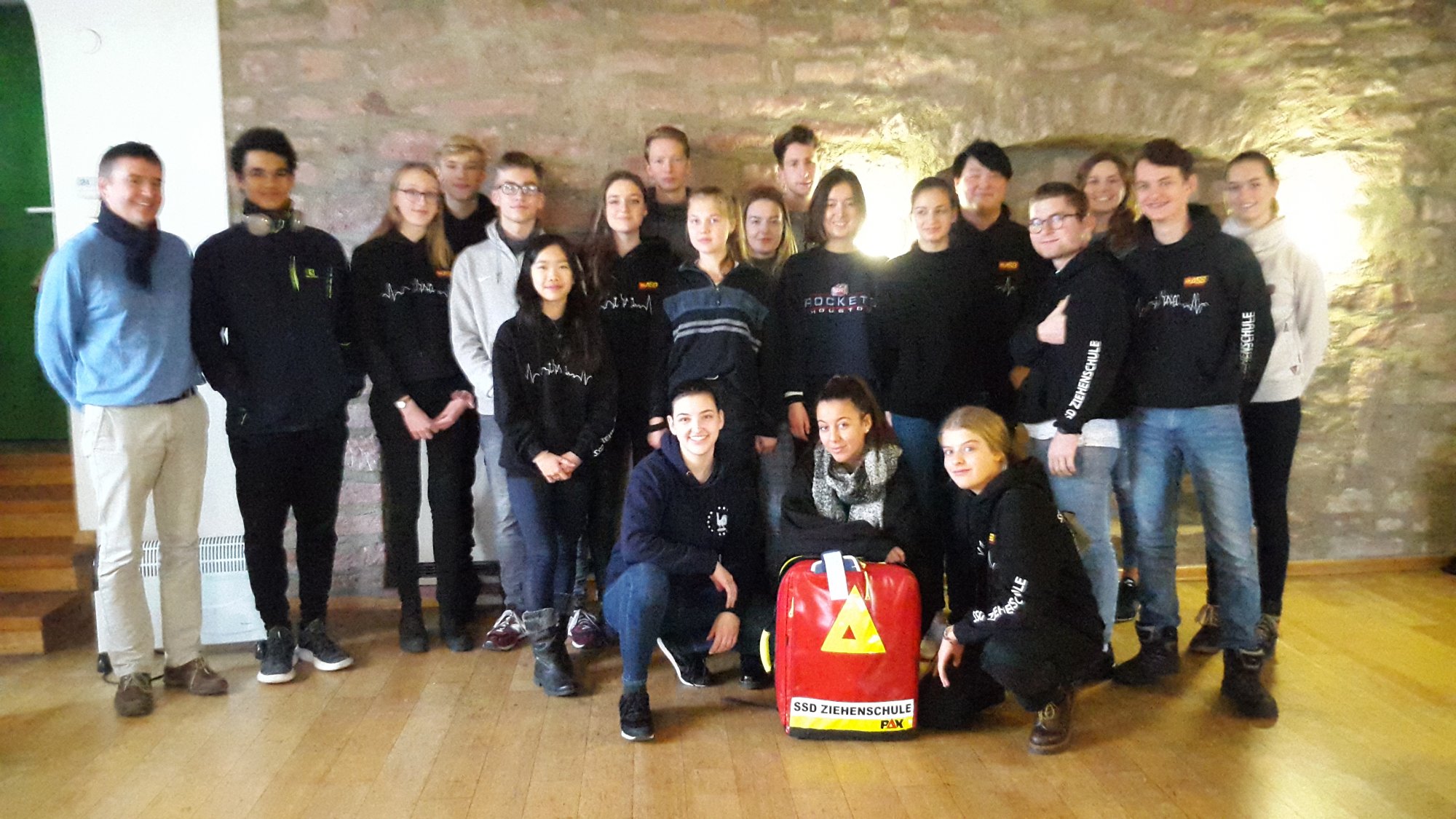Sollte doch einmal die Puste ausgehen und der Kreislauf versagen, wissen sich die Schülerinnen und Schüler in besten Händen: Herr Ott übt mit ca. 25 Schülern aus dem Schulsanitätsdienst ebenso viele Stunden auf der Burg. Verletzungen werden zum verwechseln echt geschminkt, um die Fallbeispiele so realitätsnah wie möglich zu behandeln. Auch hier geben die älteren, erfahreneren Sanis ihr Wissen an die Jüngeren weiter. Für das körperliche und seelische Wohlbefinden ist durch die Teilnehmerinnen und Teilnehmer der Probenfahrt 2018 also auf ganzer Linie gesorgt.