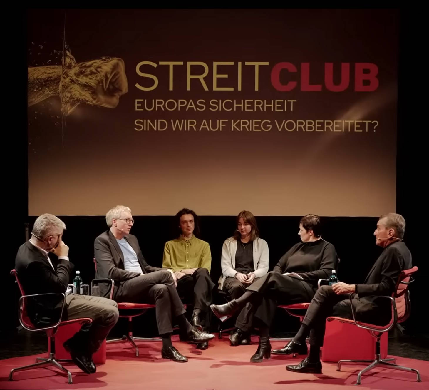 Am Abend des 13.02.2023 fand im English Theatre der „Streitclub“ statt, eine Frankfurter Veranstaltungsreihe, in der politische Fragen erörtert werden. Die Gastgeber*innen Nicole Deitelhoff und Michel Friedmann diskutierten – vor dem Hintergrund des Angriffskriegs von Russland auf die Ukraine – mit Carlo Masala und Johannes Varwick über Europas Sicherheit und den Handlungsspielraum außenpolitischer Maßnahmen. Hierbei wirkten die Schüler*innen des PoWi-Leistungskurses von Herrn Herold und des Grundkurses von Herrn Wallmeier in unterschiedlichen Rollen mit.