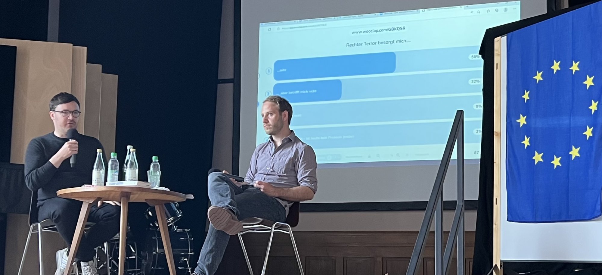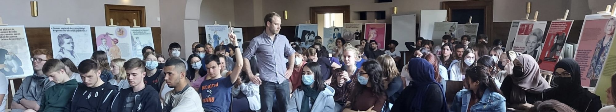 Der Journalist und Publizist Martín Steinhagen, Autor des Buches „Rechter Terror“ (2021), diskutierte mit den Schülerinnen und Schülern der Q2 über rechtsextreme Strukturen in der Bundesrepublik seit 1945 und erklärte, was wir am Mord des Kasseler Regierungspräsidenten Walter Lübcke über rechtsextreme Strukturen allgemein lernen können. Lübcke hatte sich während des Kriegs in Syrien für die Aufnahme von geflüchteten Menschen in der Bundesrepublik ausgesprochen - seine klare, mutige Haltung in dieser Frage kostete ihn sogar das Leben.