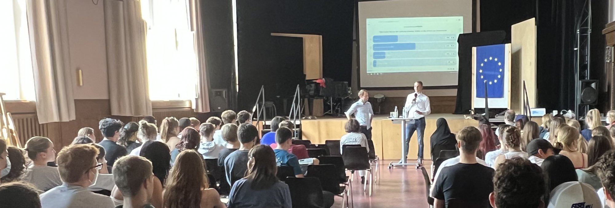 Insgesamt blicken wir auf eine sehr bunte Europawoche zurück und danken allen beteiligten Schülern und Kollegen für ihr Engagement, insbesondere natürlich der AG Aula-Technik, die uns vor und hinter den Kulissen in der Planung und Durchführung unterstützt haben!
