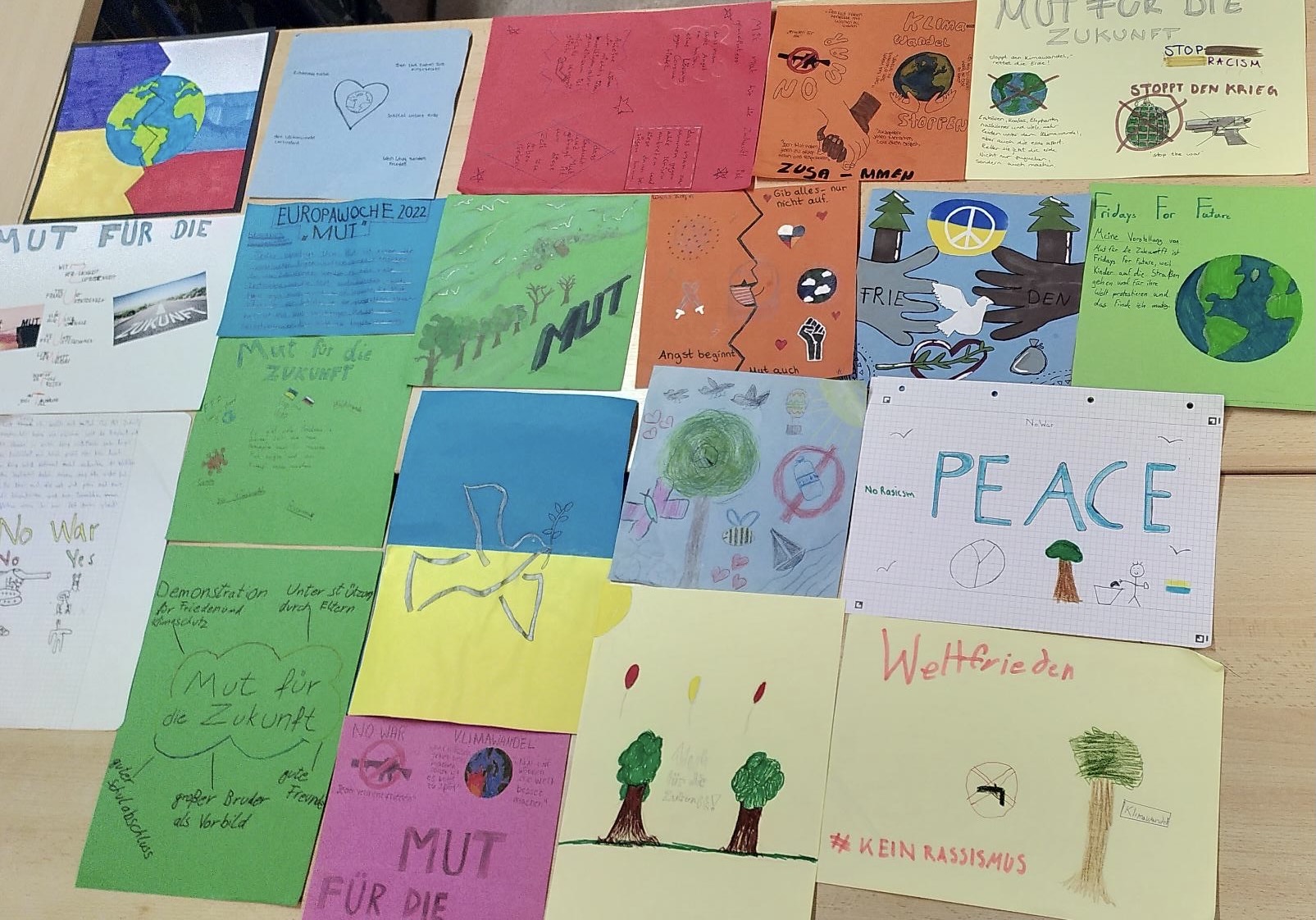- Plakate der Klasse 7a zum Thema "Mut für die Zukunft"