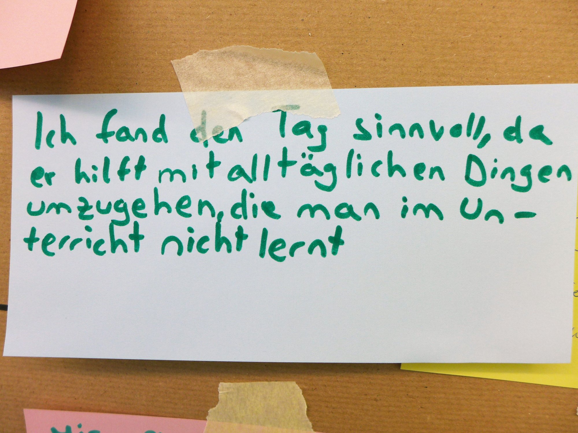 Gerade als Europaschule fühlen wir uns verpflichtet, unseren SchülerInnen einen intensiveren Austausch zu diesen Themen zu ermöglichen und dafür auch einen angemessenen Rahmen zu schaffen. Neben den Workshops musste natürlich auch Platz für die Reflexion des Erlebten und eine Bewertung des ganzen Tages sein. Hierfür war der Nachmittag reserviert. Die Rückmeldungen der Schülerinnen und Schüler waren fast ausnahmslos positiv.