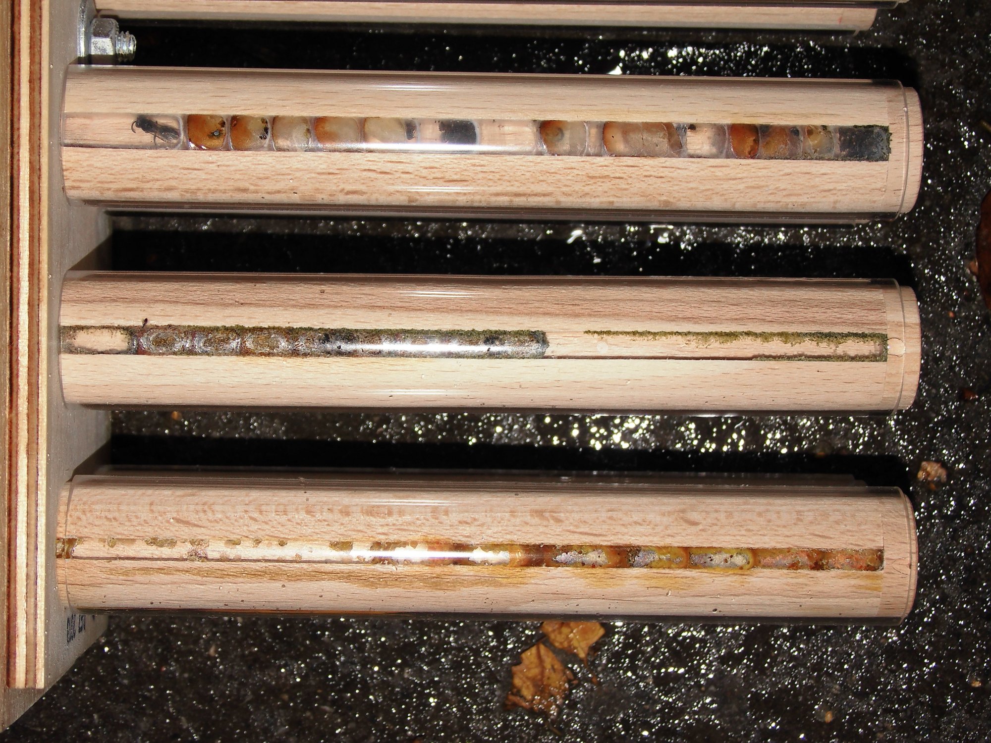 In Kooperation mit der Professur für Naturschutz & Landschaftsökologie der Albert-Ludwigs-Universität Freiburg werden die Wildbienen und Wespen in den Insektennisthilfen im Schulgarten der Ziehenschule untersucht.