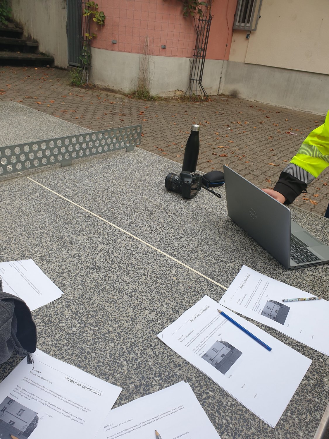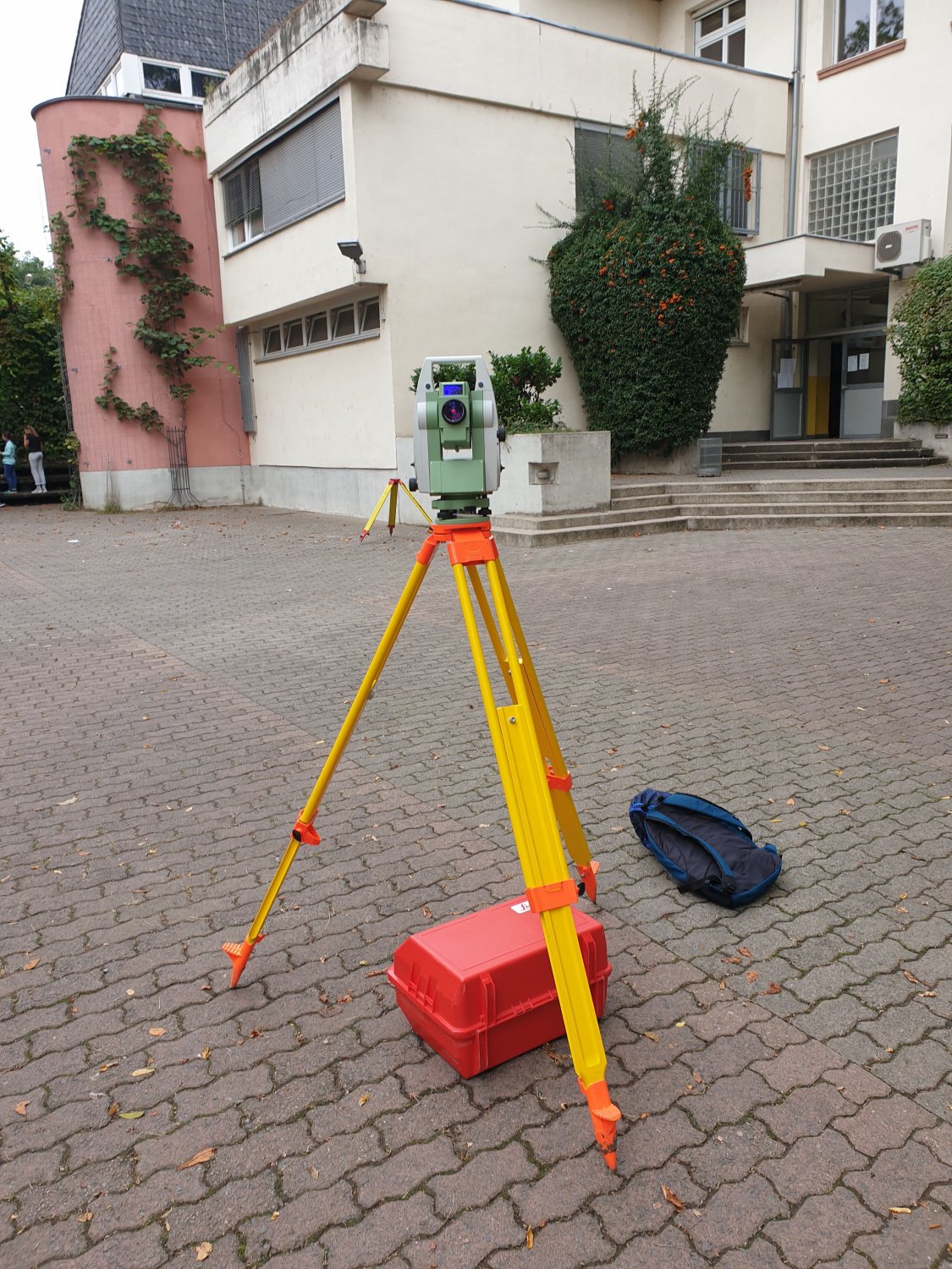 Im Rahmen der Themenwoche besuchten uns (die Klasse 10b der Ziehenschule) am 17. September 2021 Experten vom Vermessungsamt Frankfurt am Main und zeigten uns unterschiedliche Messmethoden und Geräte, die man zum Vermessen von Höhen, Steigungen und Abständen verwendet.