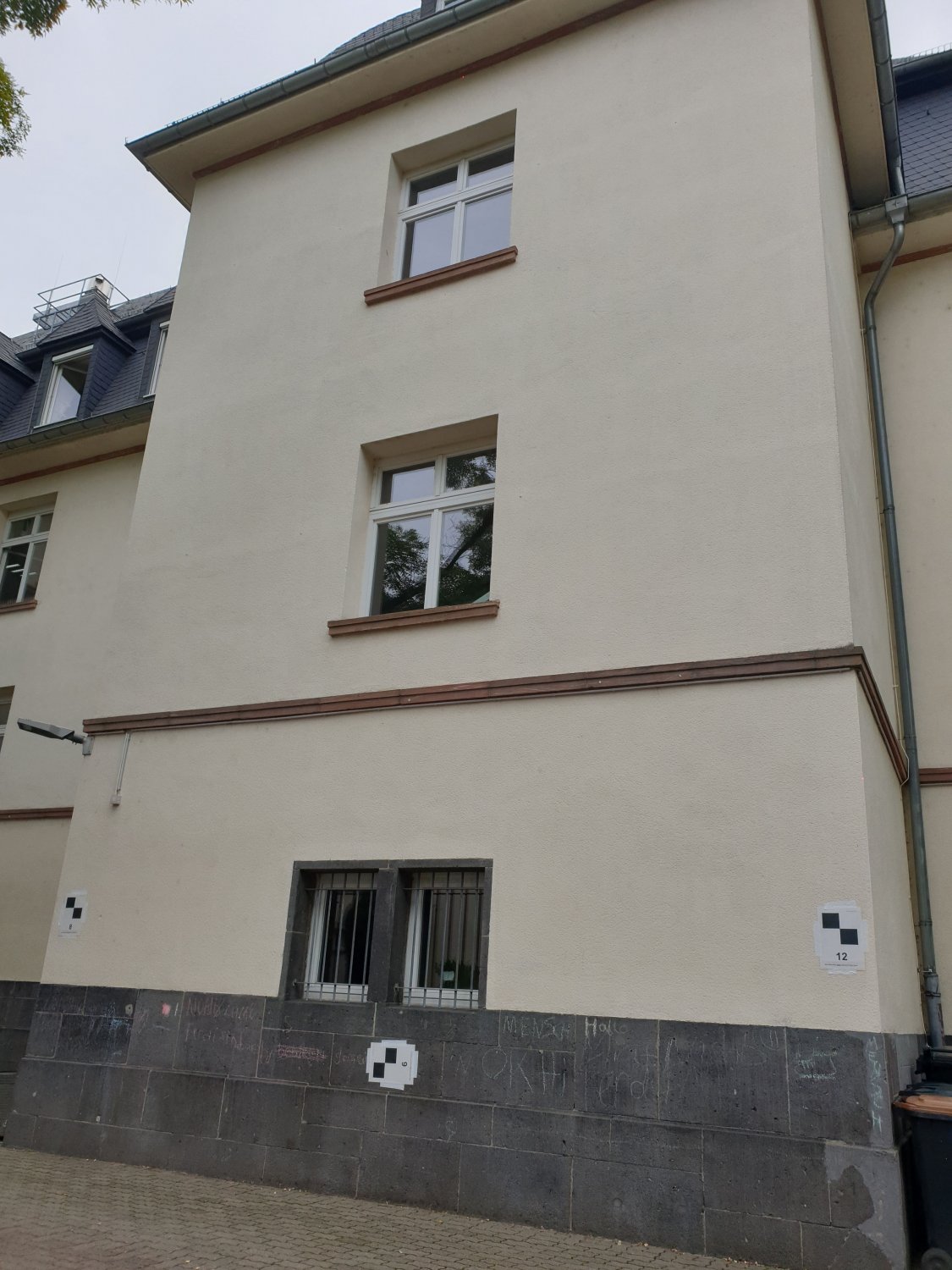 Bei der Photogrammetrie, welche an der Station F erläutert wurde, benutzt man statt dem Laserscanner eine einfache Kamera. Hier werden also verschiedene Blickwinkel eines Gebäudes fotografiert und anschließend ausgewertet. Während es bei dem Laserscanner um Punktgenauigkeit geht, welche insbesondere bei Denkmalen eine große Rolle spielt, kann man mit Hilfe des 3D-Models der Photogrammetrie beispielsweise die Farben eines Gebäudes genauer erkennen. Hier wird im Millimeterbereich genau gemessen und es gibt verschiedenste Nutzungsmöglichkeiten, zum Beispiel kann man die Photogrammetrie für Google Maps und 3D-Aufnahmen verwenden.