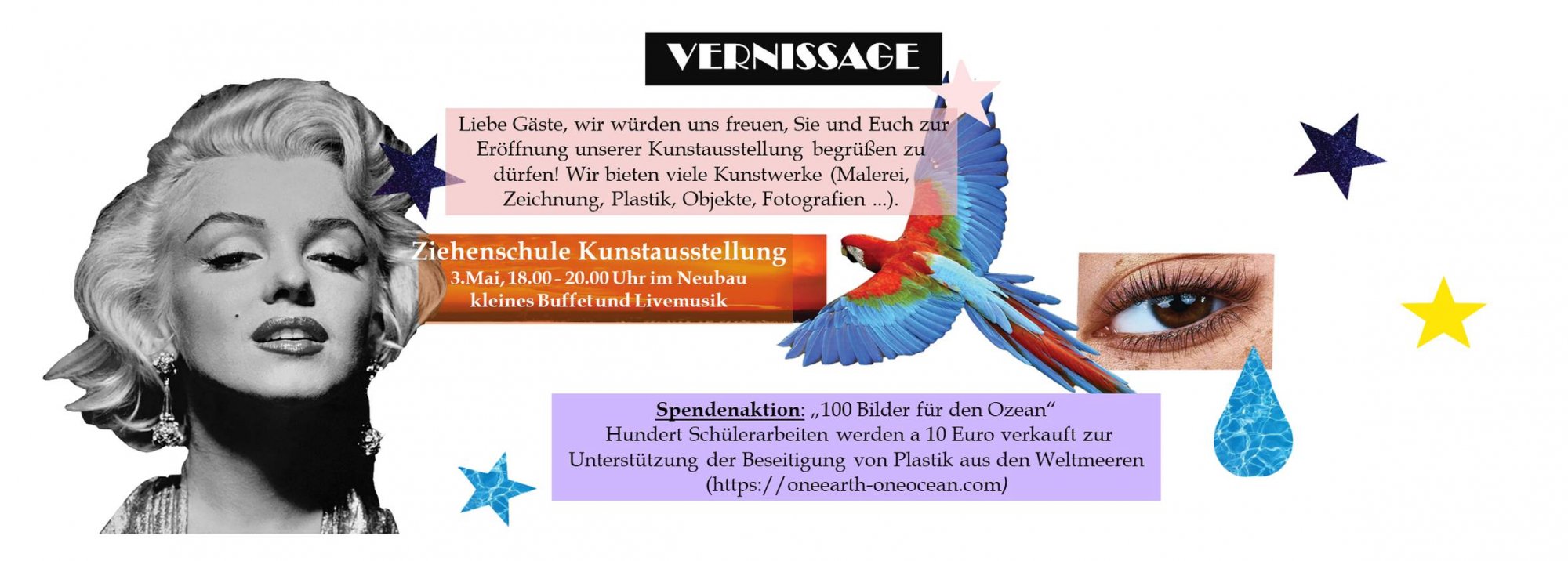 findet wieder unsere große Vernissage mit Kunstwerken aus dem Unterricht der Ziehenschule statt: Von der 5. Klasse bis zum Kunst-LK sind alle vertreten mit Malereien, Zeichnungen, Skulpturen, Objekten, Fotos und vielem anderen. Außerdem gibt es klimaneutrales Catering. Kommt alle kommt massenhaft und bringt eure Friday for Future-Plakate mit!