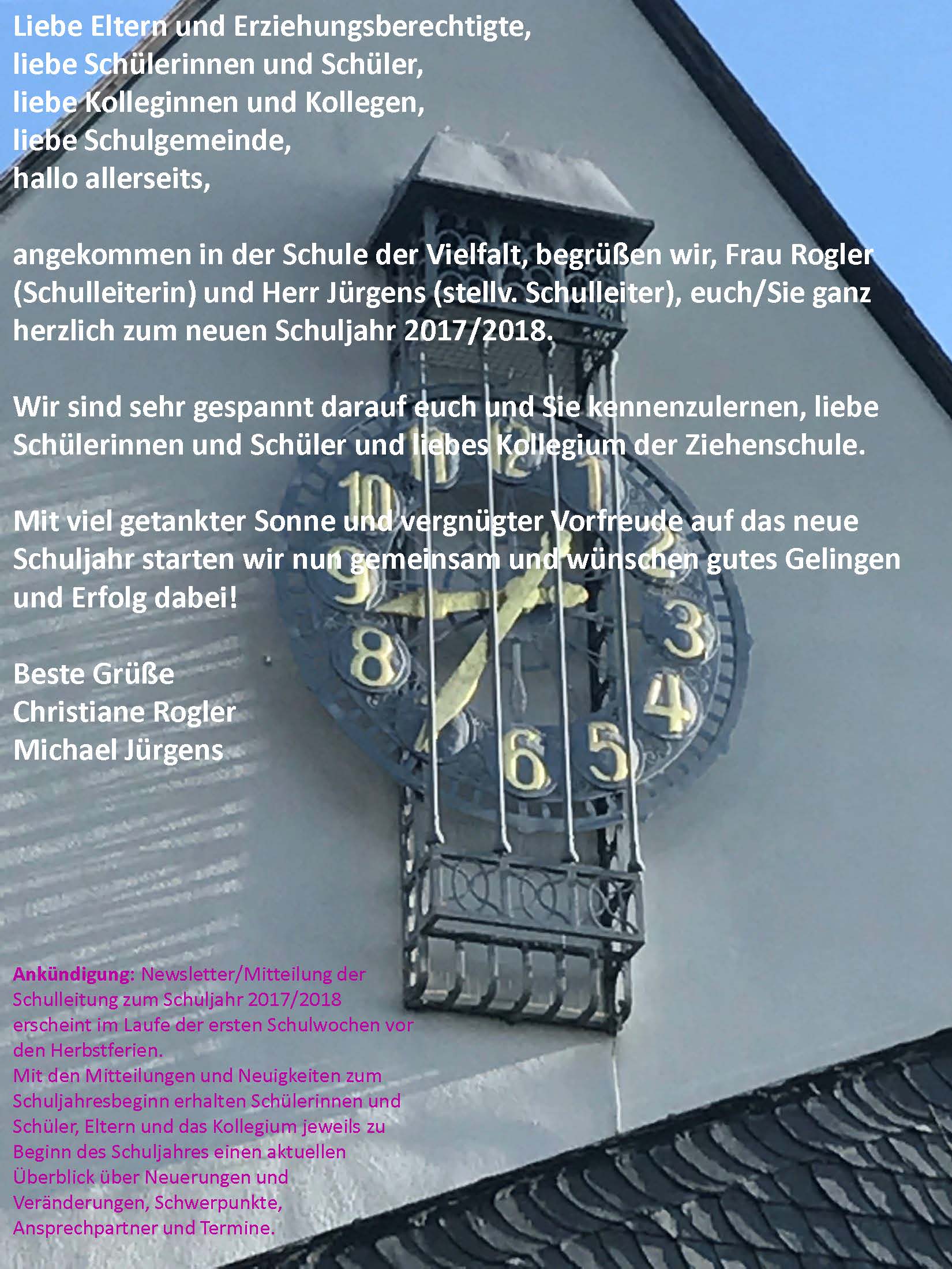 Mit den Mitteilungen und Neuigkeiten zum Schuljahresbeginn erhalten Schülerinnen und Schüler, Eltern und das Kollegium jeweils zu Beginn des Schuljahres einen aktuellen Überblick über Neuerungen und Veränderungen, Schwerpunkte, Ansprechpartner und Termine.