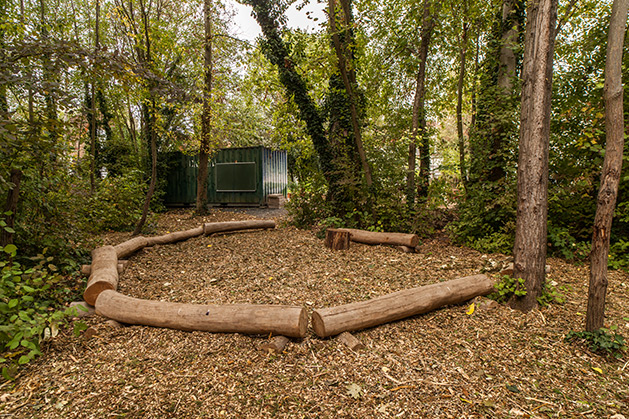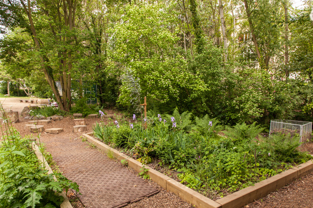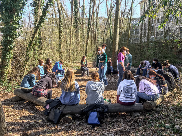 Alle Klassen können im Gartenbereich und im Schulwäldchen unterrichtet werden, dafür wurde eigens ein Sitzkreis und ein grünes Klassenzimmer eingerichtet; ebenso kann die Fläche der Waldbühne benutzt werden.