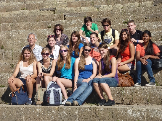 - Teilnehmer*innen der Studienfahrt nach Rom 2012 im Amphitheater von Ostia Antica
