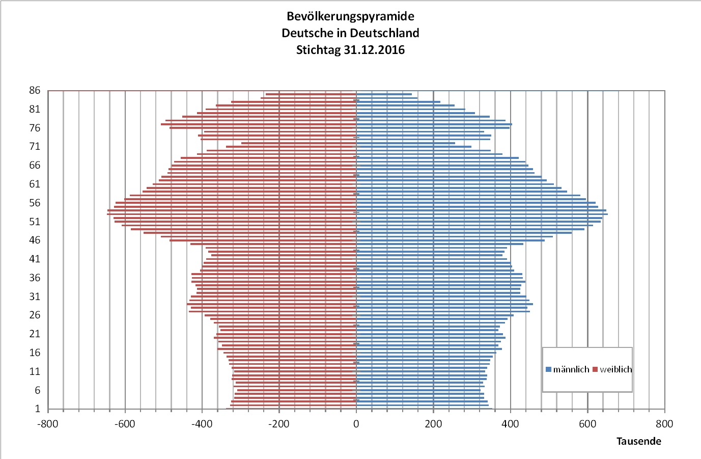 - Vermutlich sind viele der 56-Jährigen und Jüngeren in Deutschland geboren worden (2. und 3. Generation).