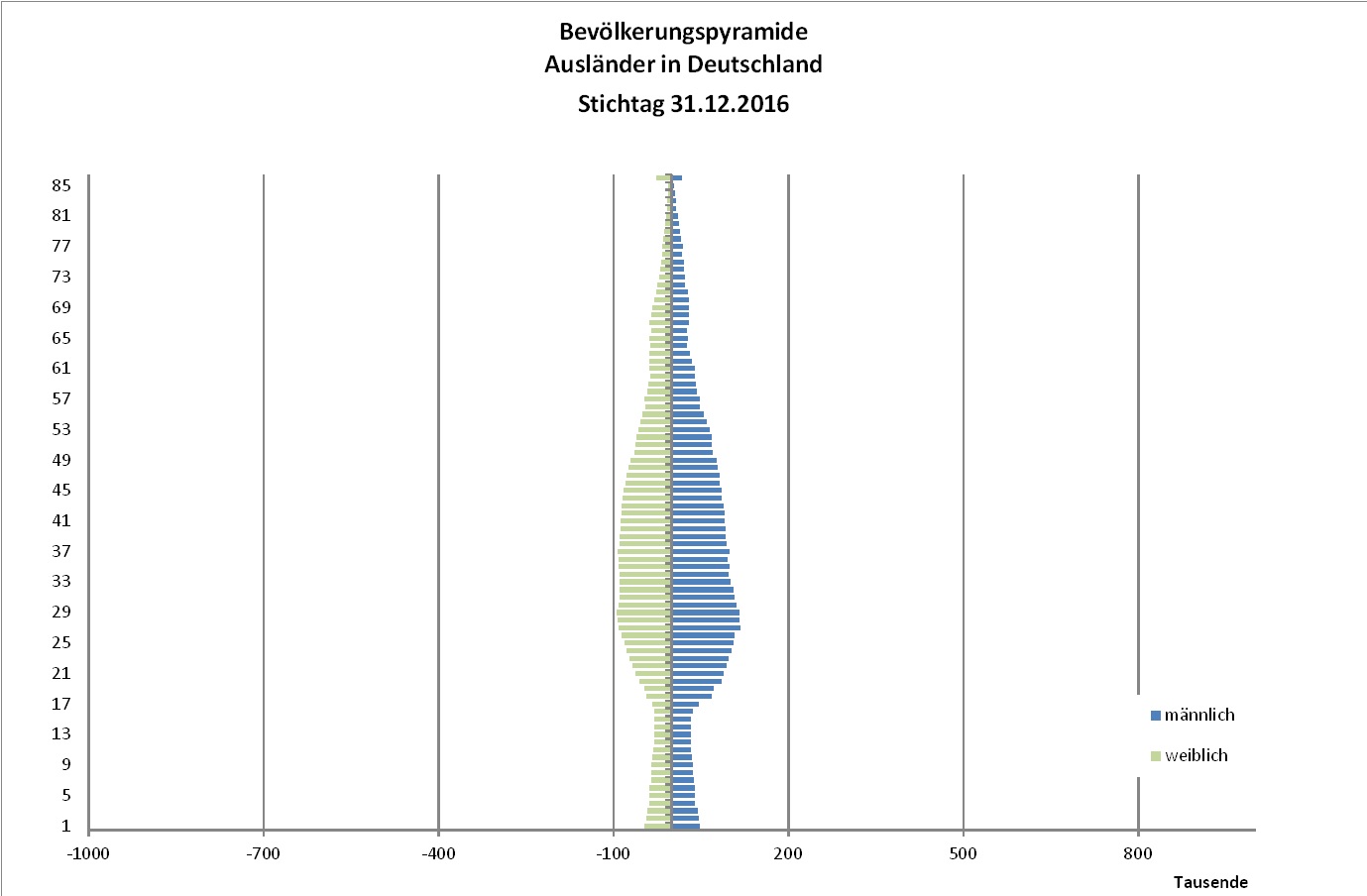 - Es gibt relativ wenig ältere Menschen. Vermutung: Die Gastarbeiter der 1. Generation sind nach dem Ausscheiden aus dem Erwerbsleben wieder in ihre Heimatländer zurückgekehrt.
